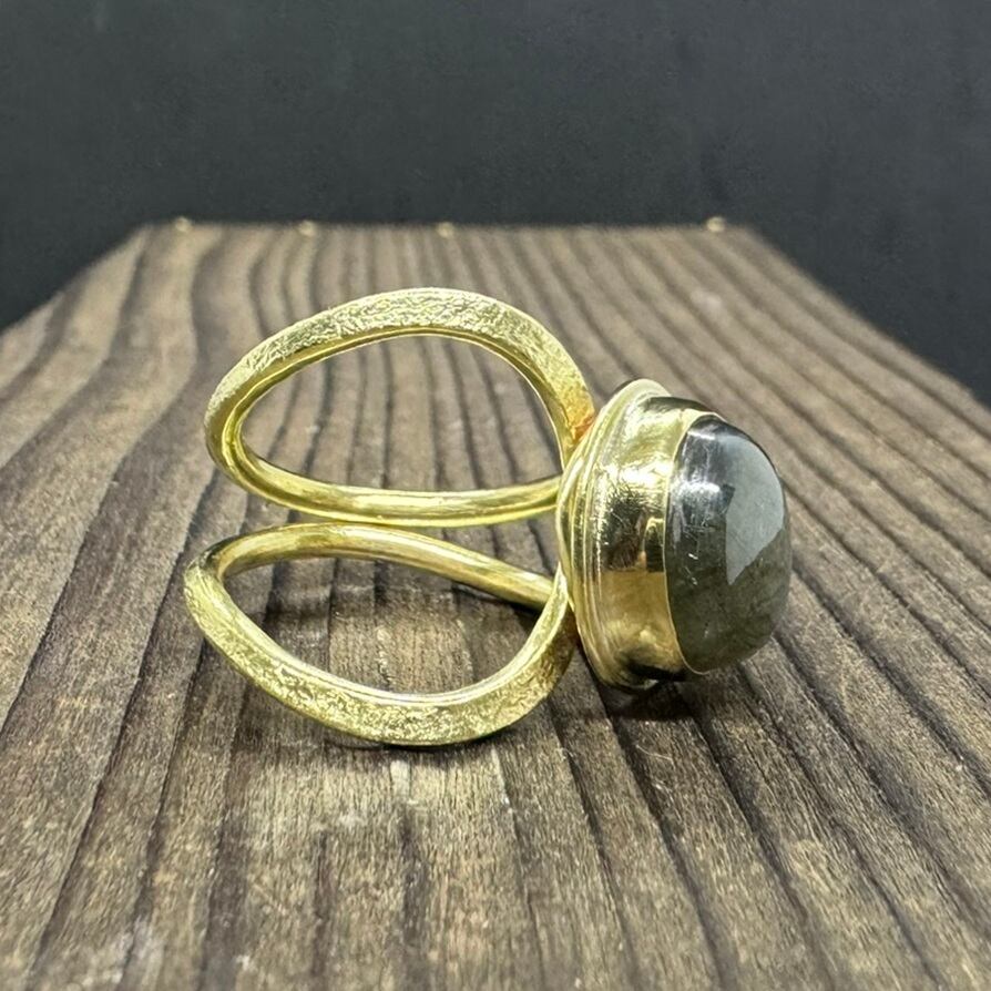 存在感のあるラブラドライトを使った指輪です。