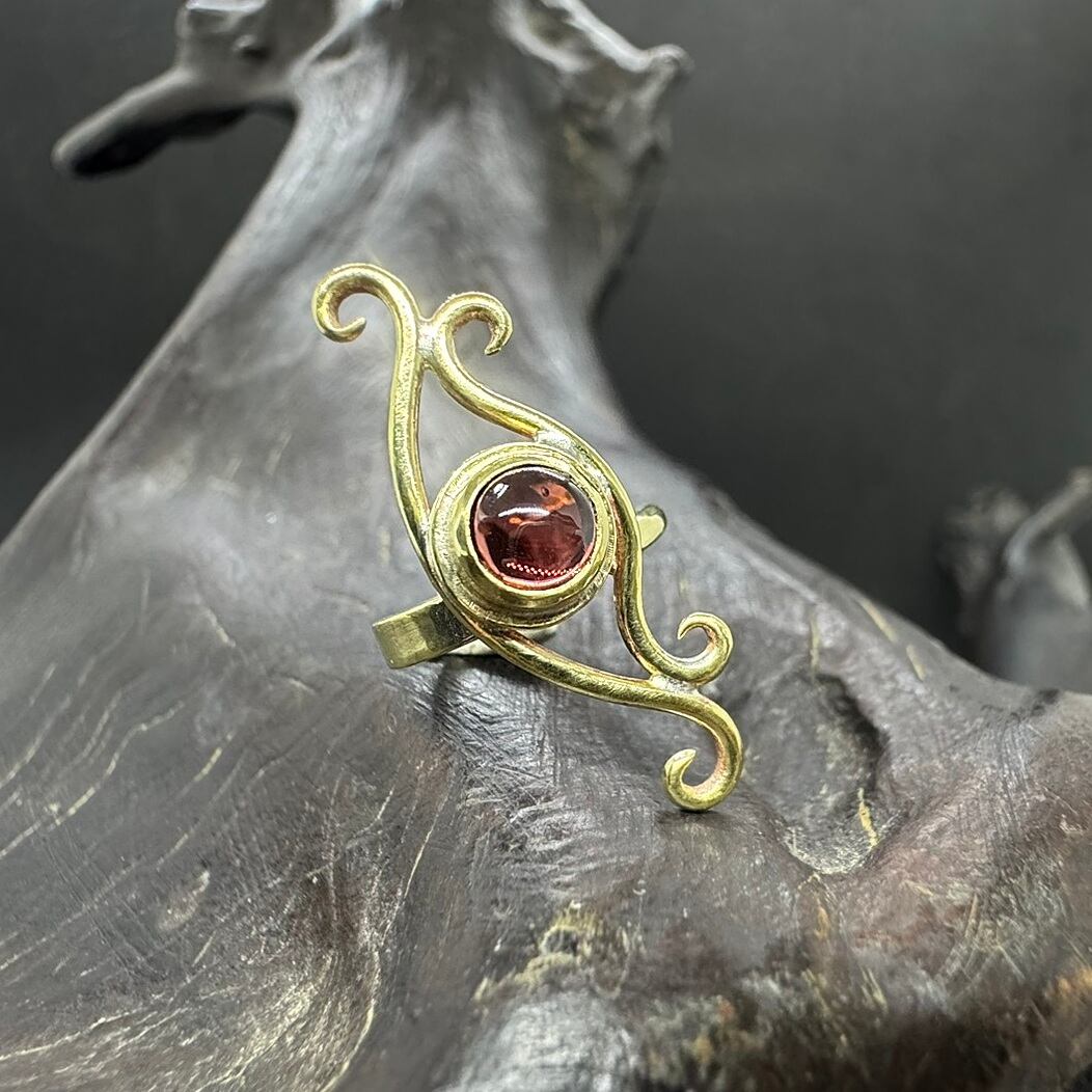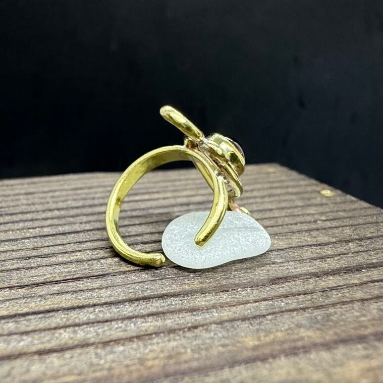 落ち着いた紅色と真鍮が、パッと目を引く個性と存在感のあるイヤーカフになりました。