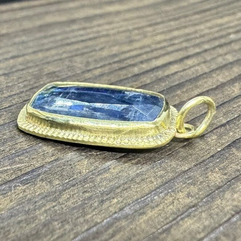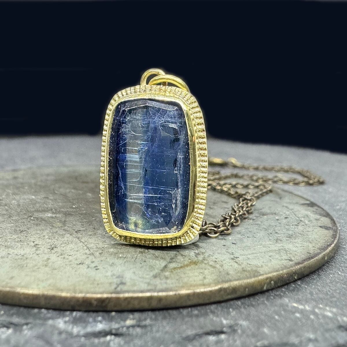 濃淡のブルーが印象的なバイカラーカイヤナイトです。