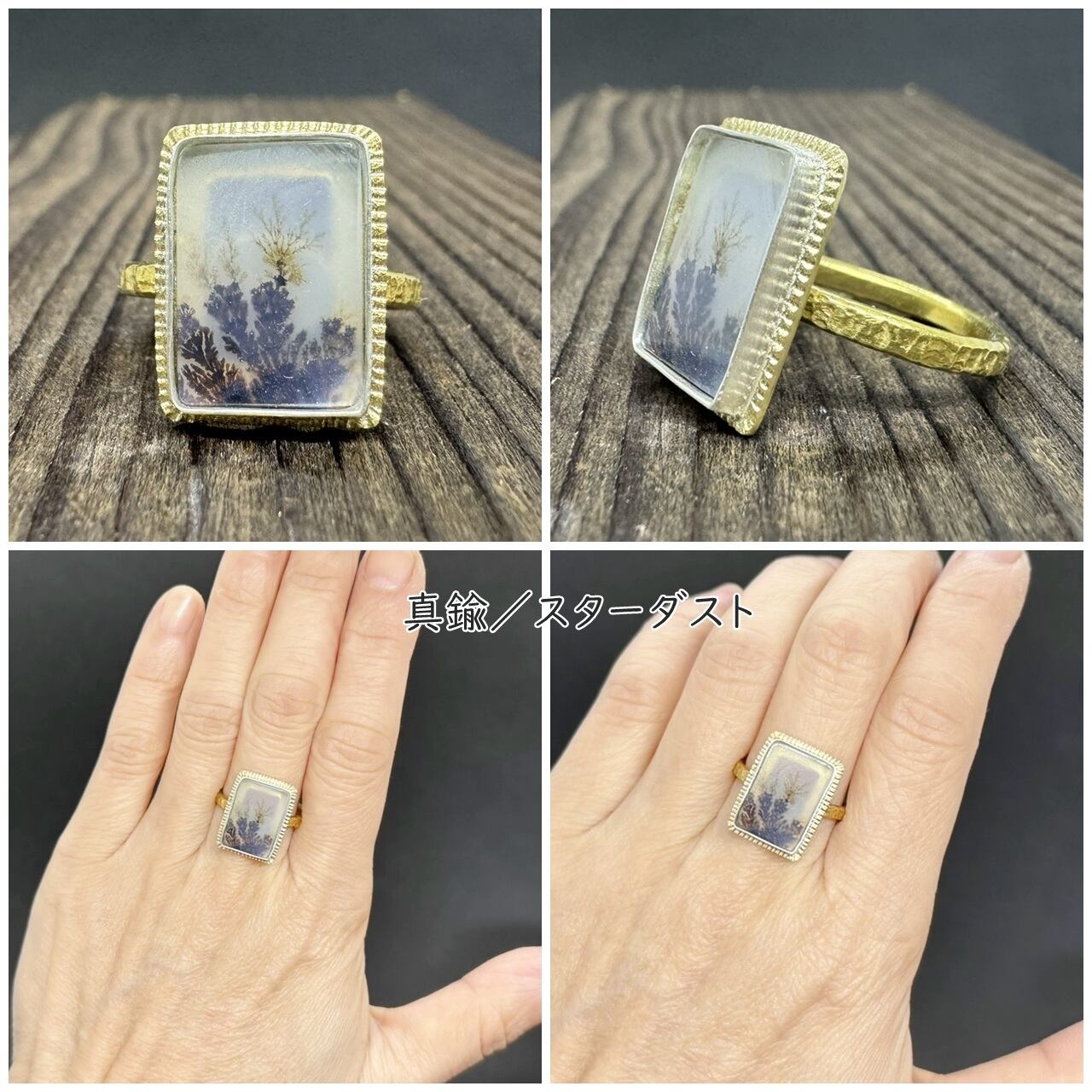 石の周りはシルバーで囲み、周りの真鍮に細かな飾りを入れて石を引き立てました。