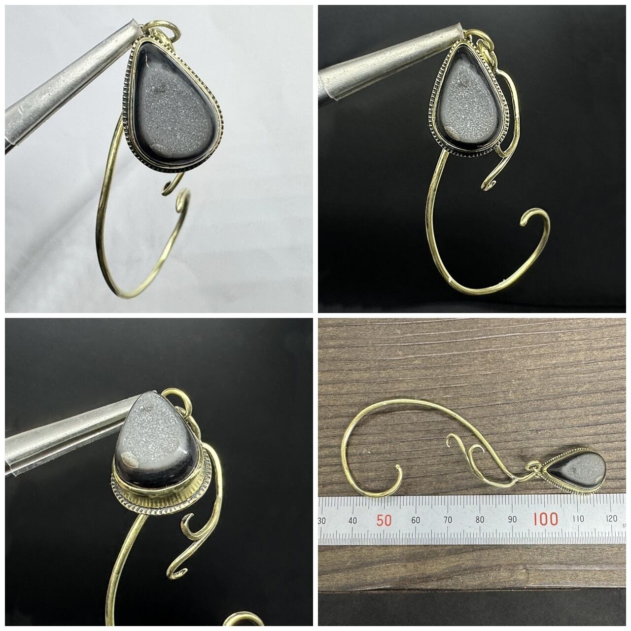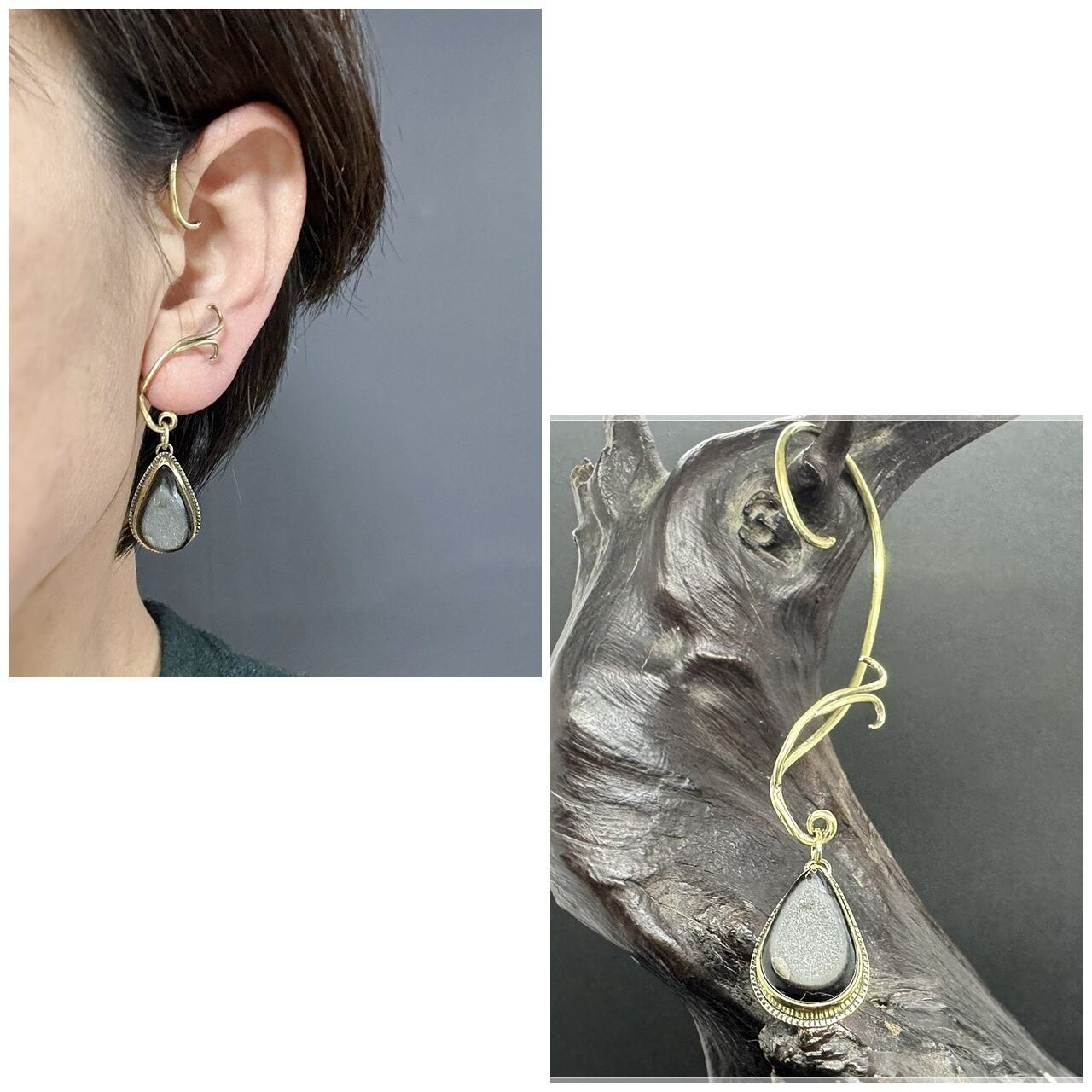 耳に沿うような真鍮のデザインと揺れるドゥルージーアゲートが、パッと目を引く個性と存在感のあるイヤーフックになりました。