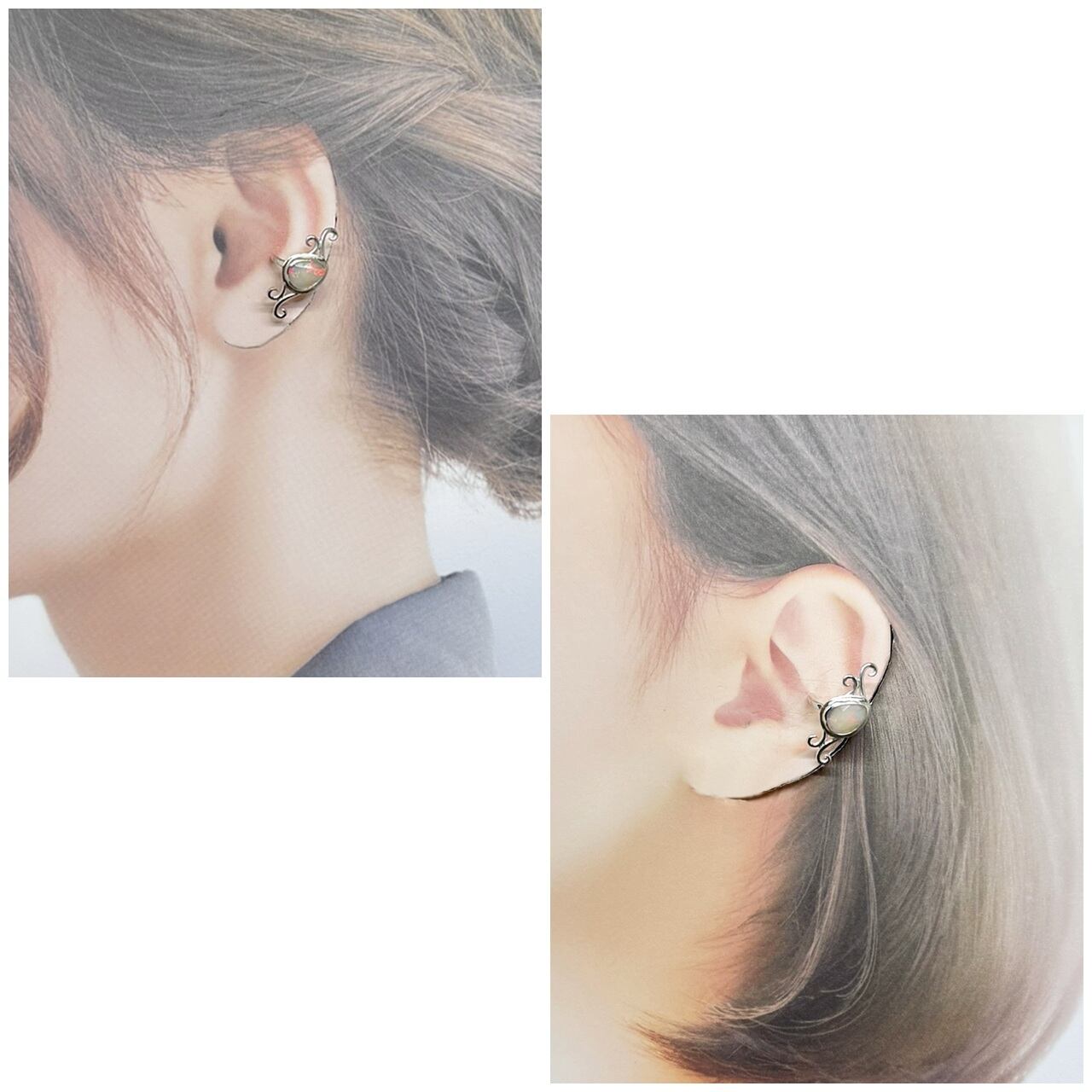 遊色が魅力的なオパールが、パッと目を引く個性と存在感のあるイヤーカフになりました。