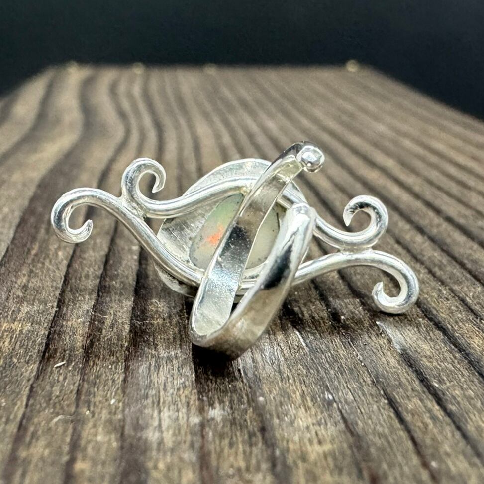 どの角度からもいろんな色の遊色が見え、ローズカットがキラキラと光ります。