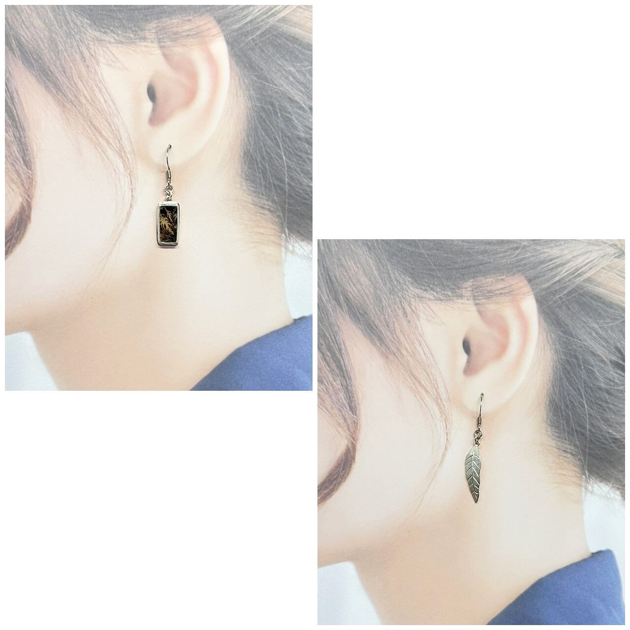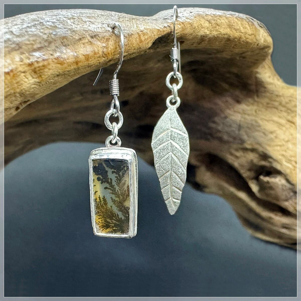 長方形のデンドリティックアゲートを使ったアシンメトリーピアスです。