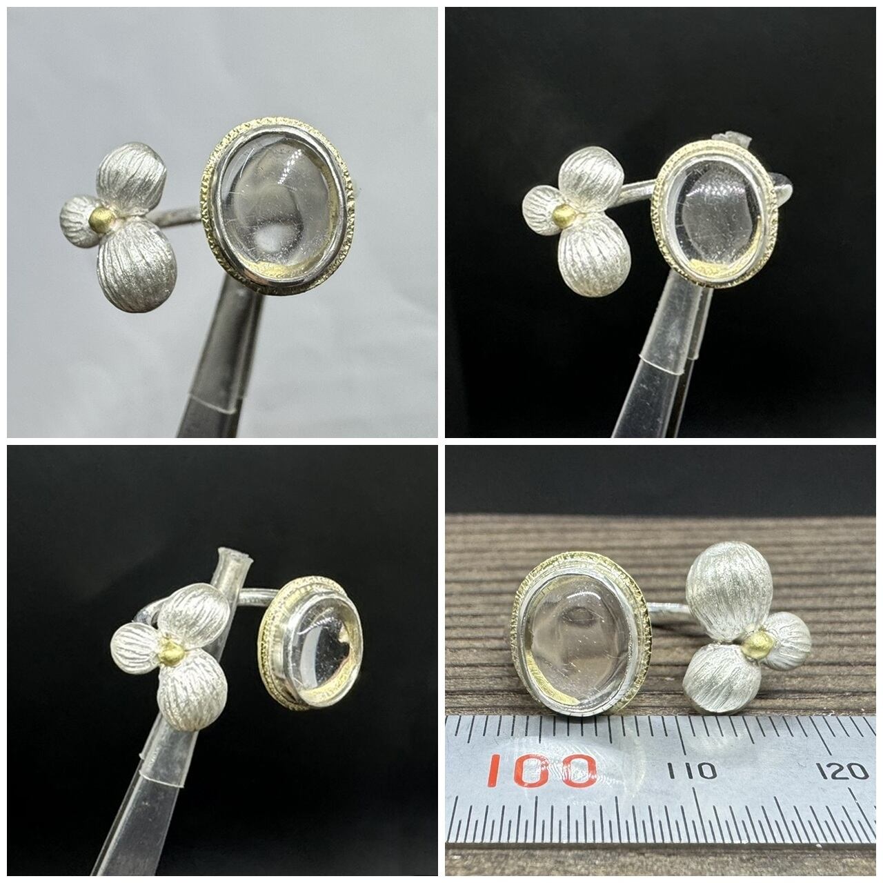 もう片方にはシルバーで作った丸い粒の花を合わせて可愛い印象にしています。