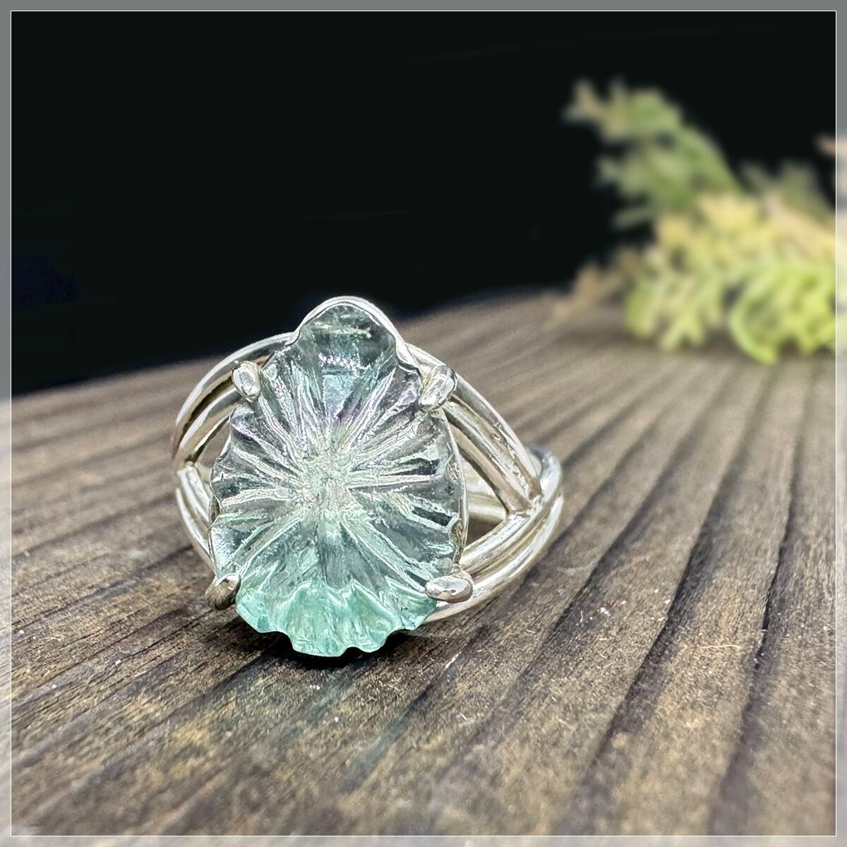 透明感のある淡いグリーンの中にうっすらとパープルのラインが入っている可愛い石です。