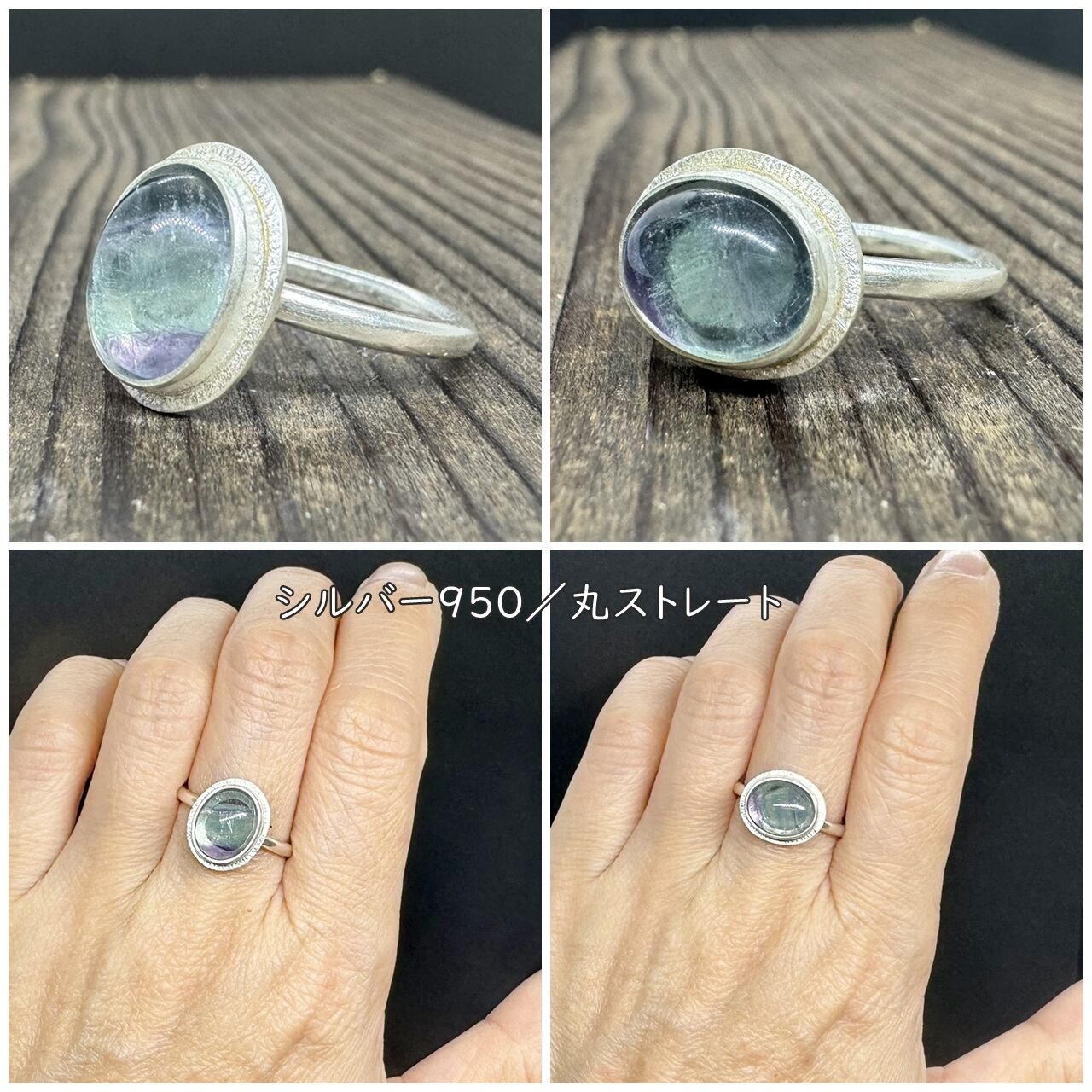 透明感のある淡いグリーンとフローライト特有の縞模様が爽やかで涼し気な印象の指輪になりそうです。