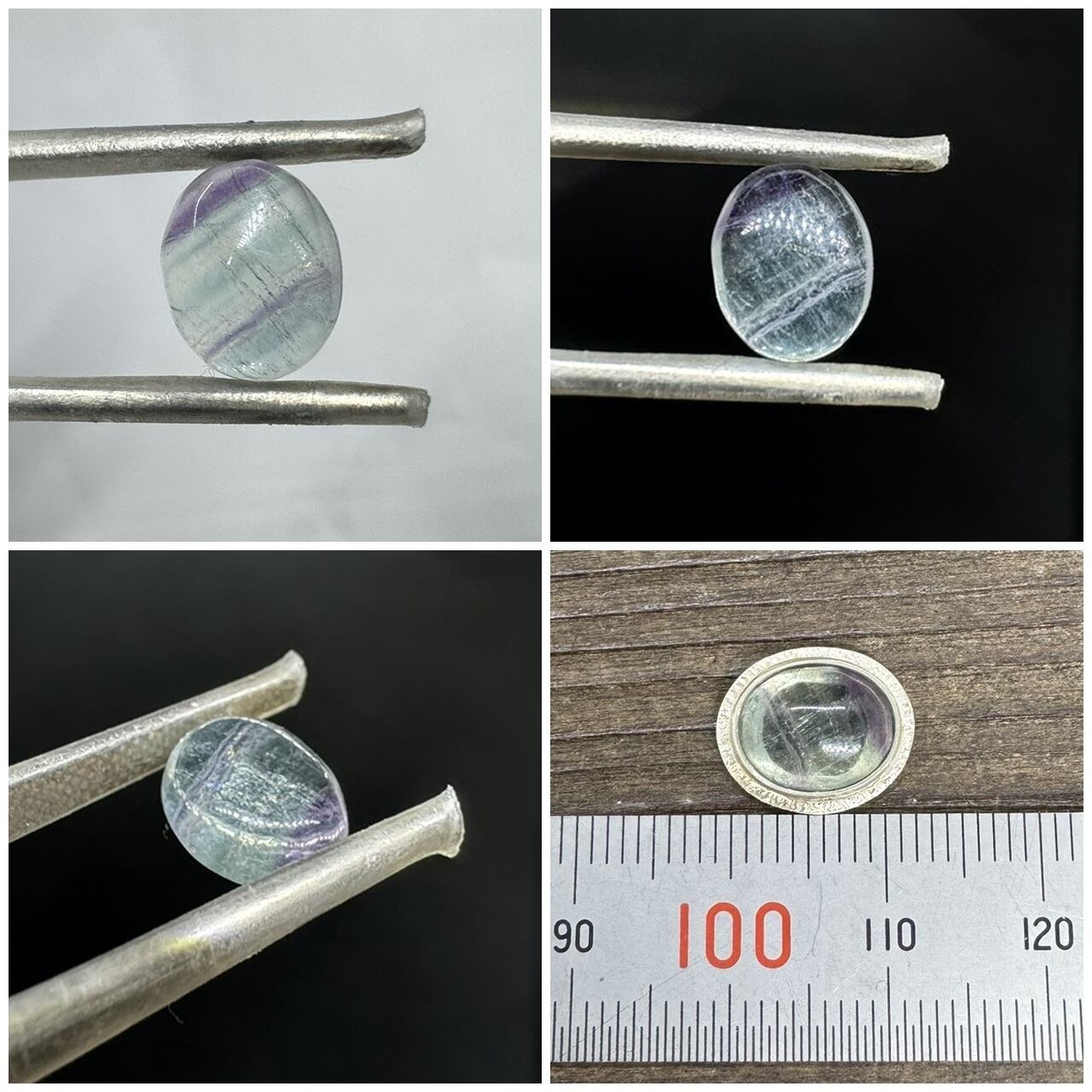 透明感のある淡いグリーンの中にうっすらとパープルのラインが入っている可愛い石です。