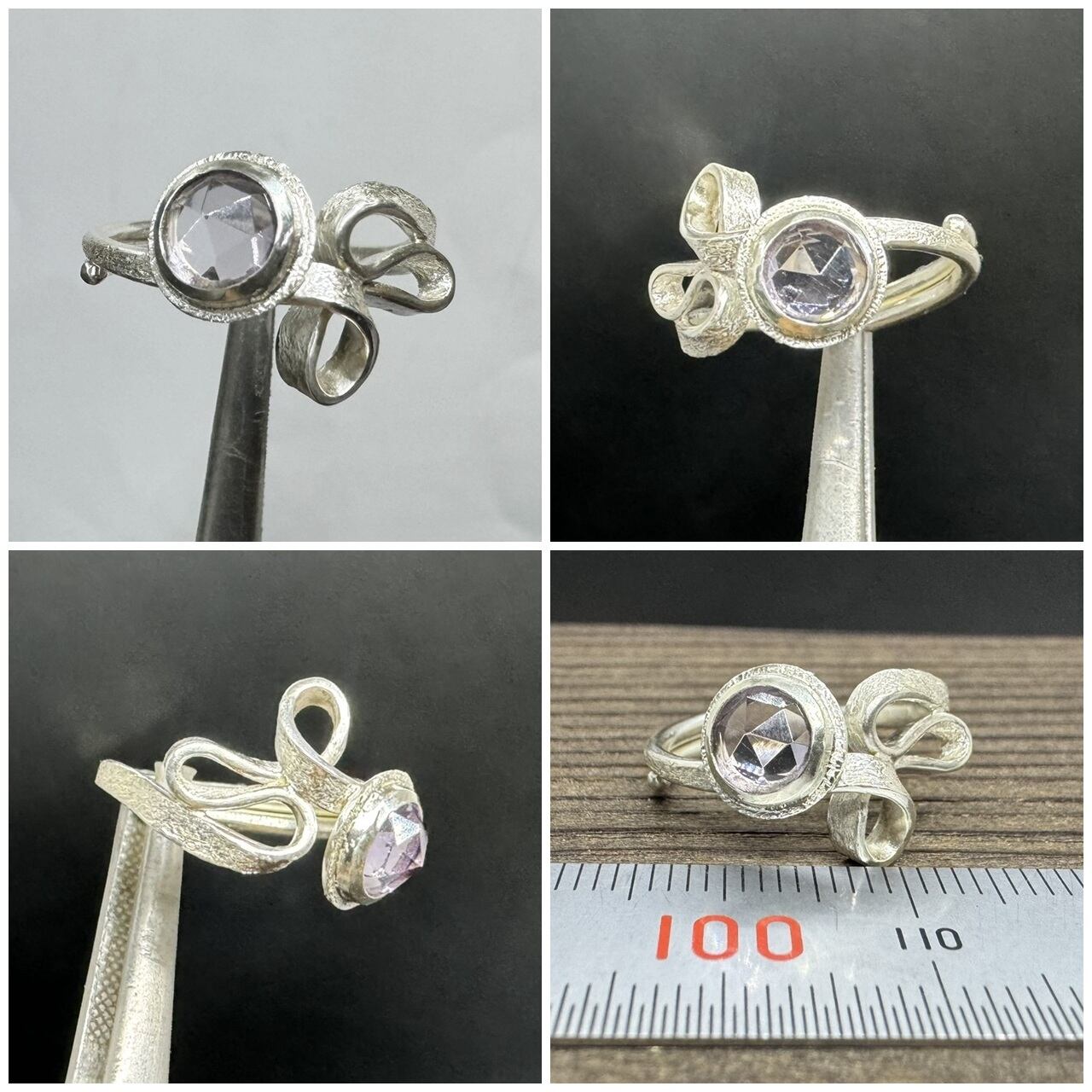 不思議な形のシルバーアームと上品なアメジストとでシンプルですが個性も光る指輪になりました。