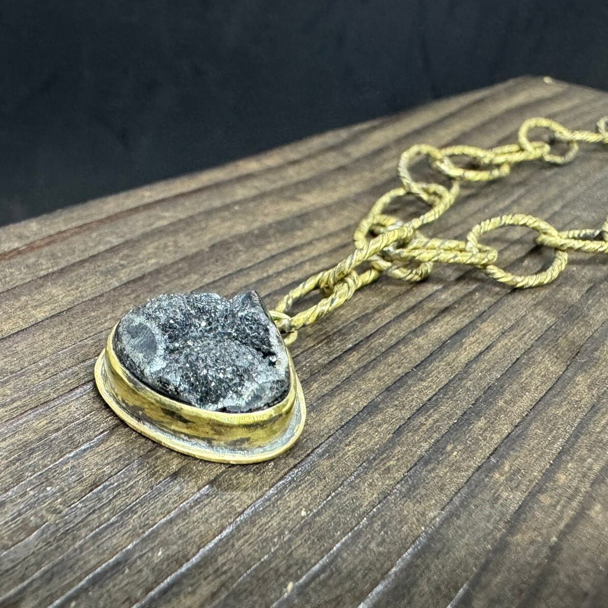 個性的な形のアゲートの中に細かい結晶が集まって動かすたびにキラキラして綺麗です。