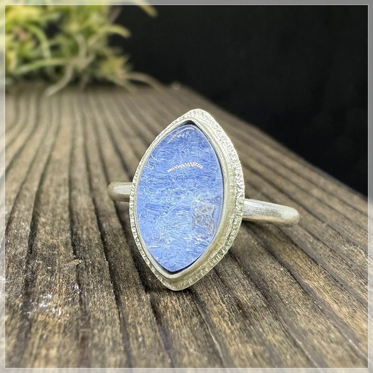 爽やかなブルーがパッと目を引く上品な大人可愛い指輪になりそうです。