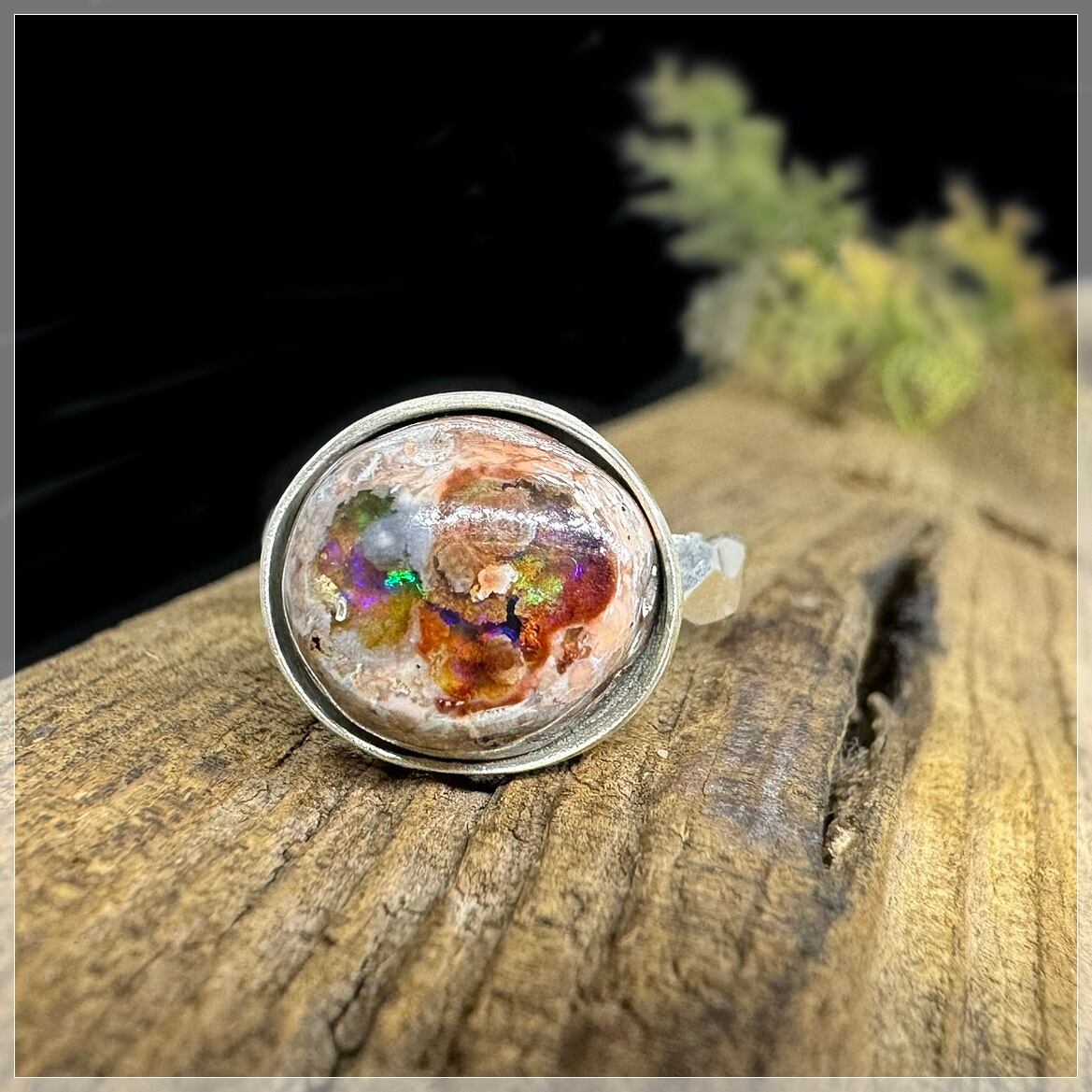 どの角度からも遊色が見える、オパールの魅力たっぷりの存在感のある指輪になりそうです。