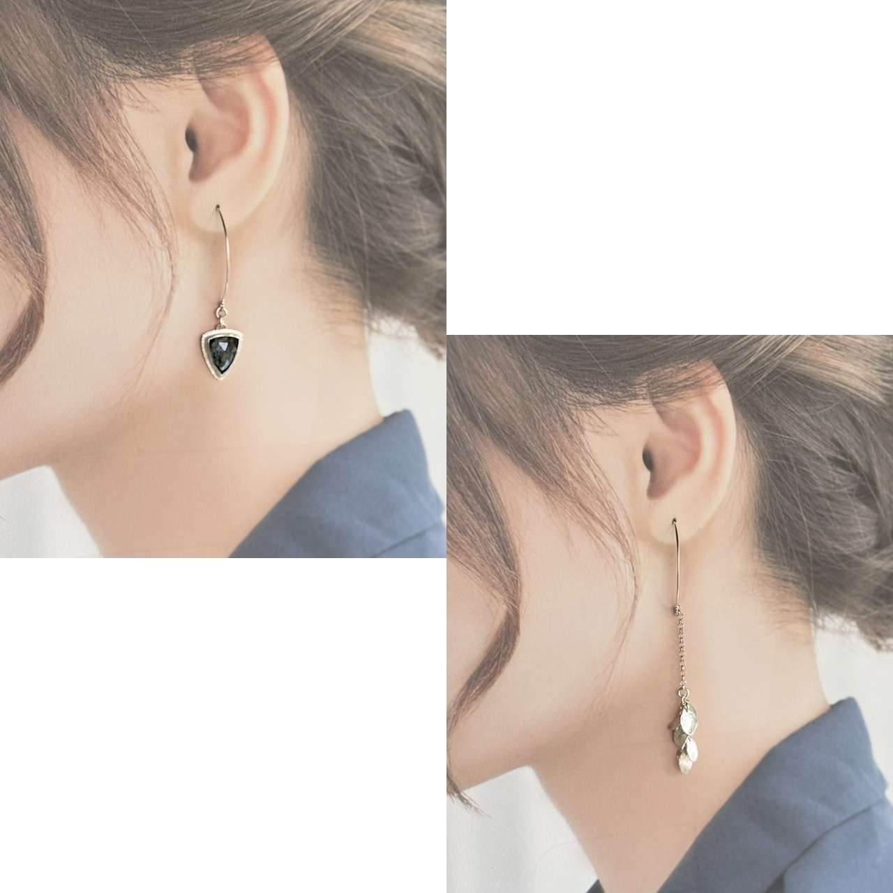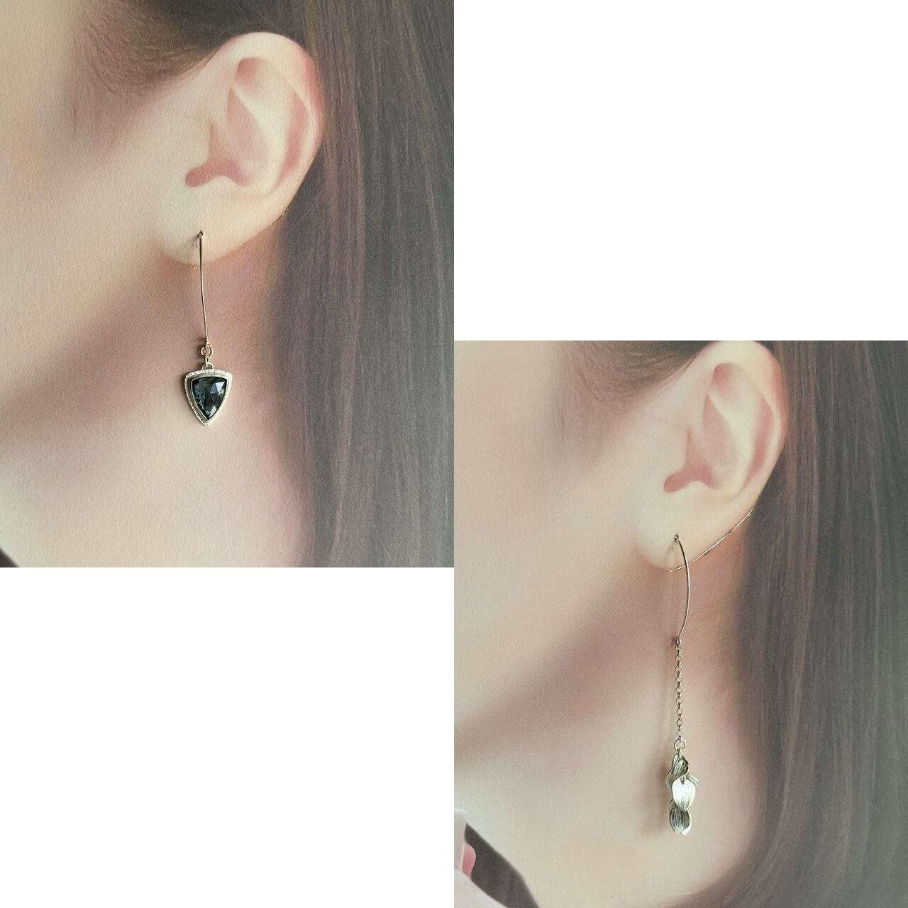 シャープでカッコいい個性的なデザインのアシンメトリーピアスになりました。