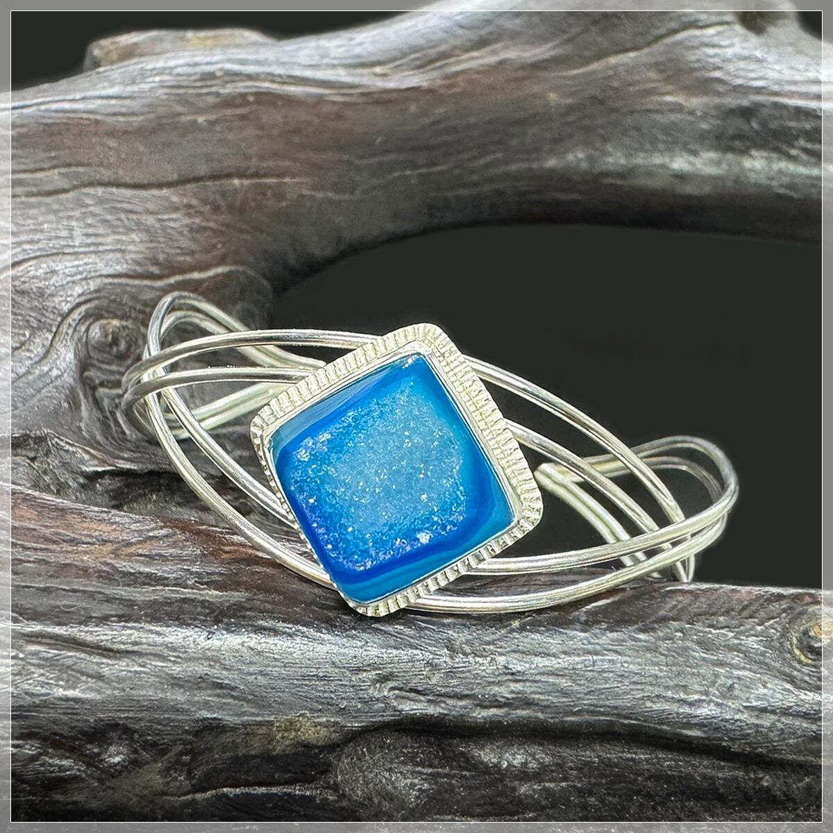 鮮やかな青色が存在感抜群のドゥルージータイプのアゲートです。