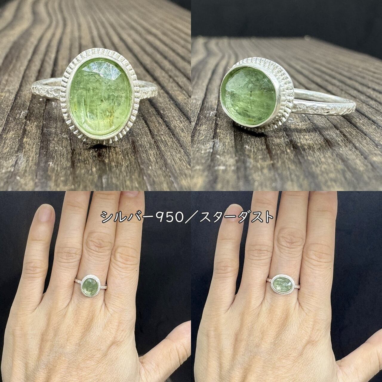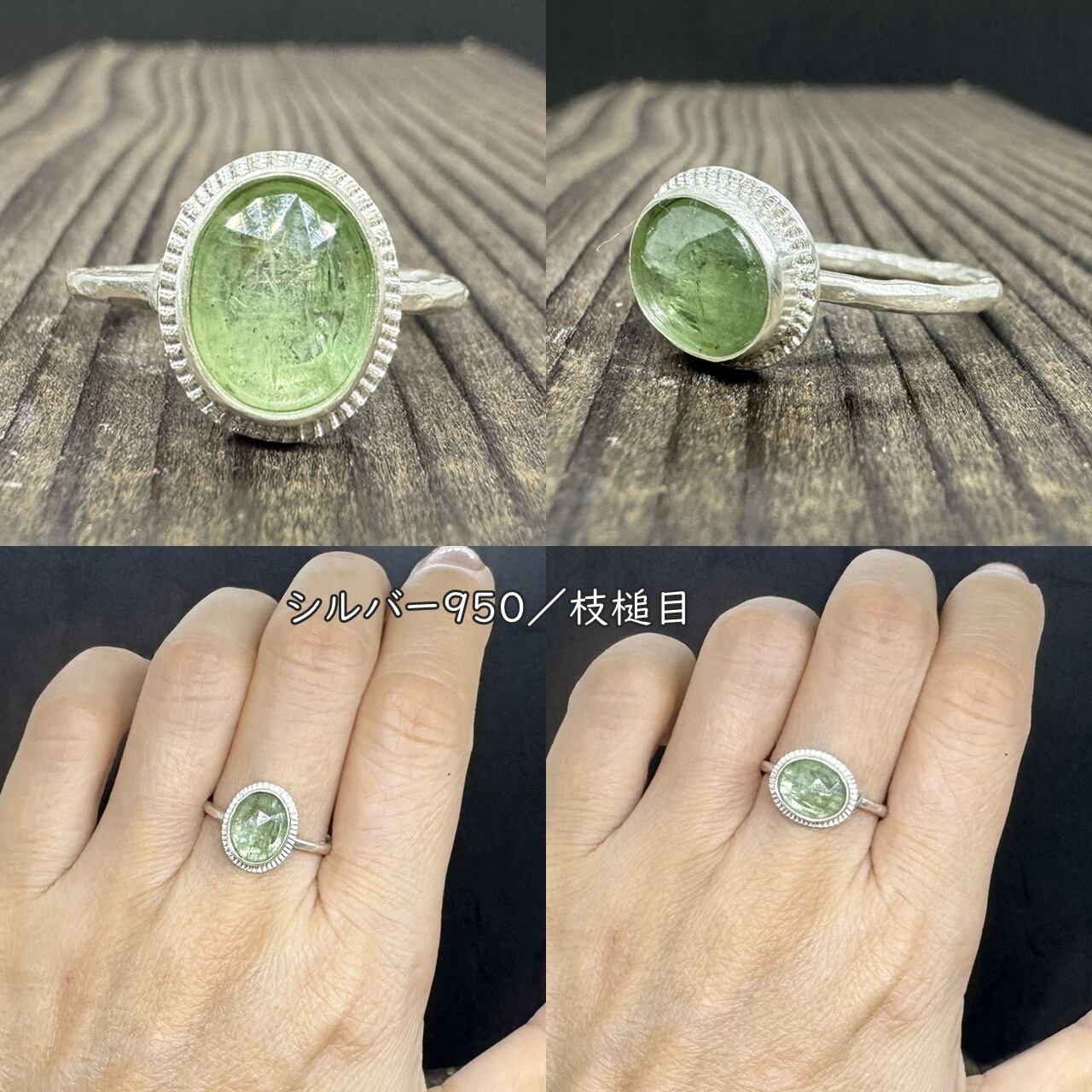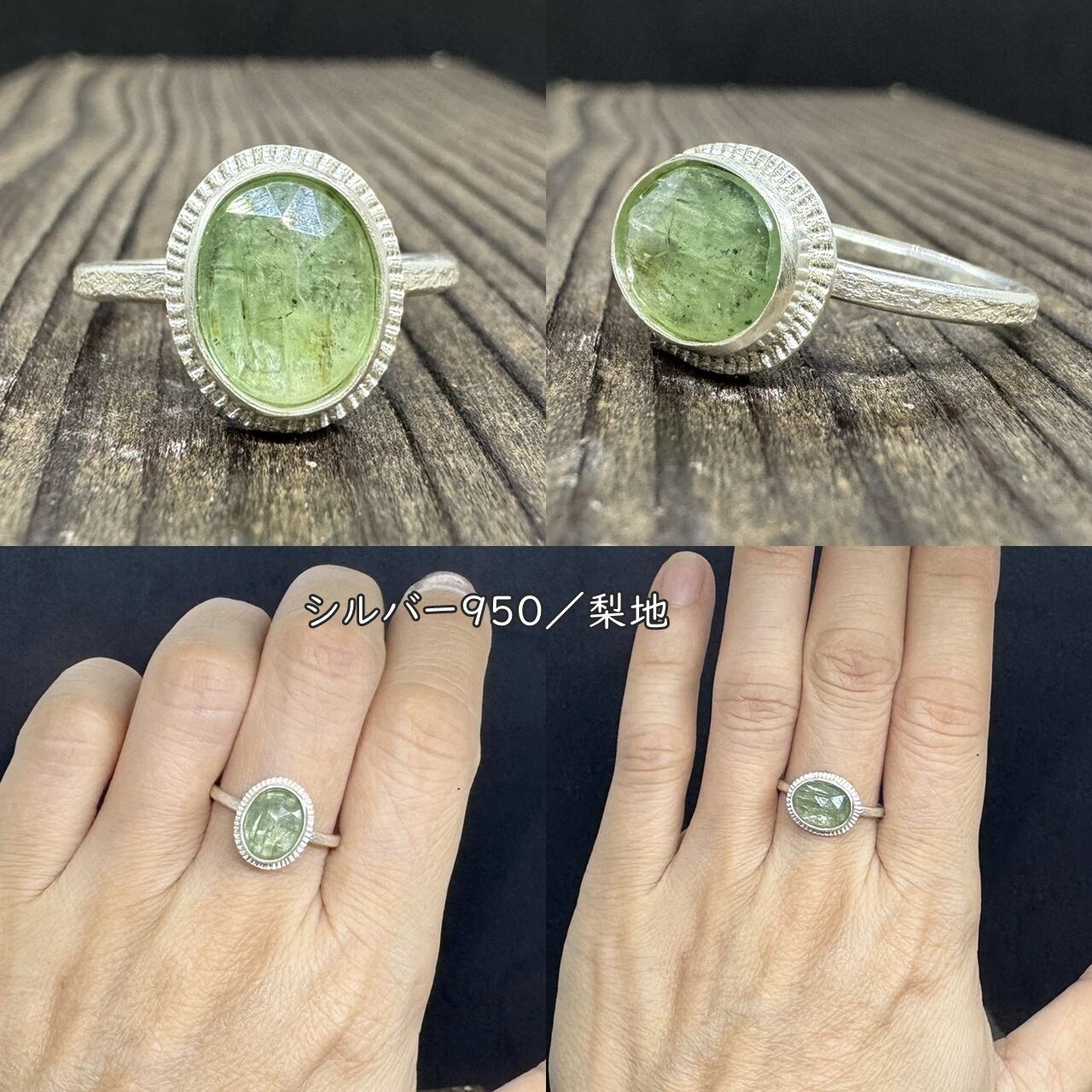 普段使いにぴったりのサイズ感で、爽やかな黄緑色が光る、上品な指輪になりそうです。