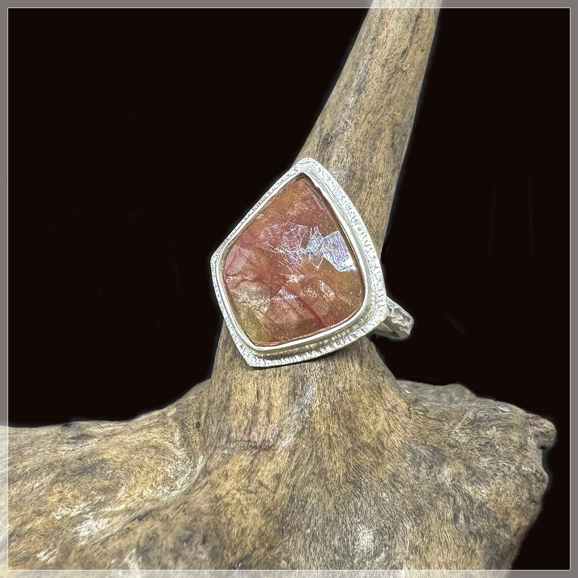 薄い茶+オレンジっぽい色味で、動かすとシルバーのような色もキラキラと光る綺麗な石です。