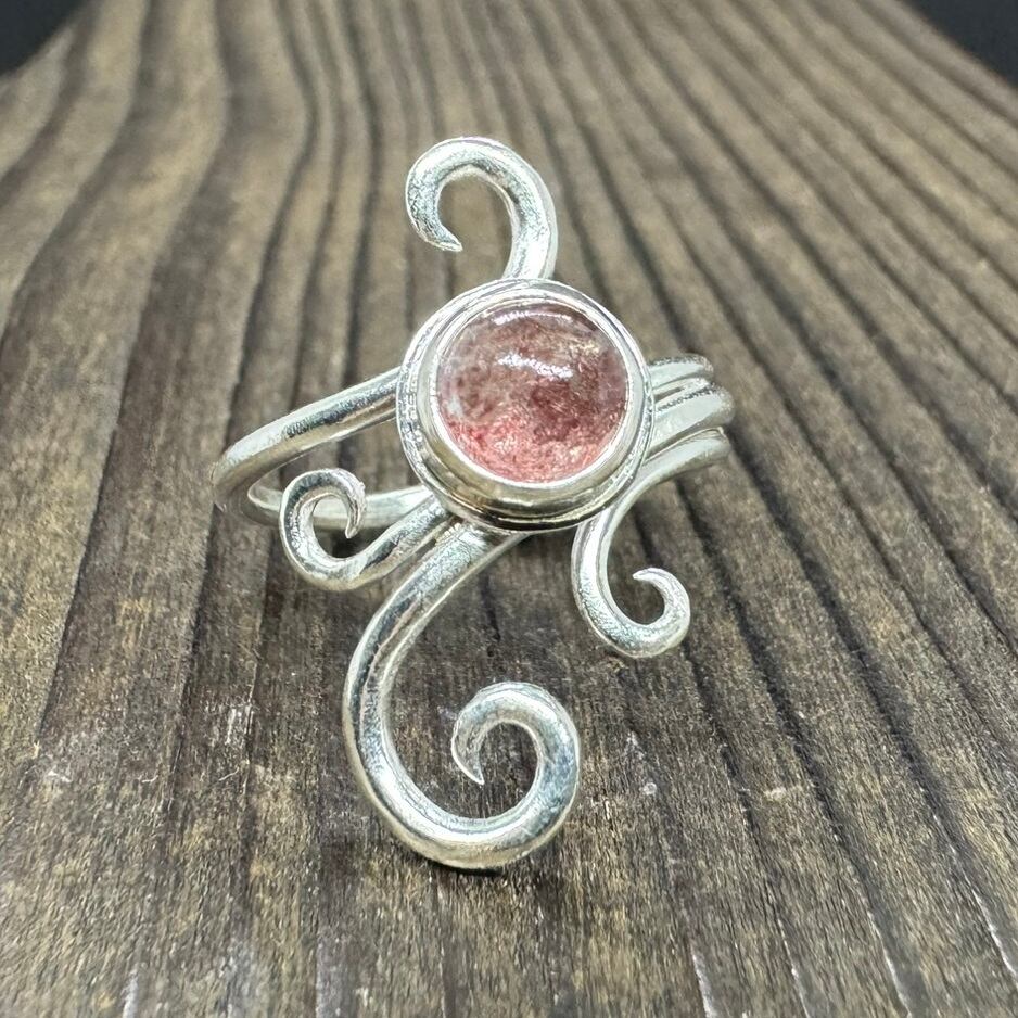 小さめのピンクエピドート(ストロベリークォーツ)を使った指輪です。