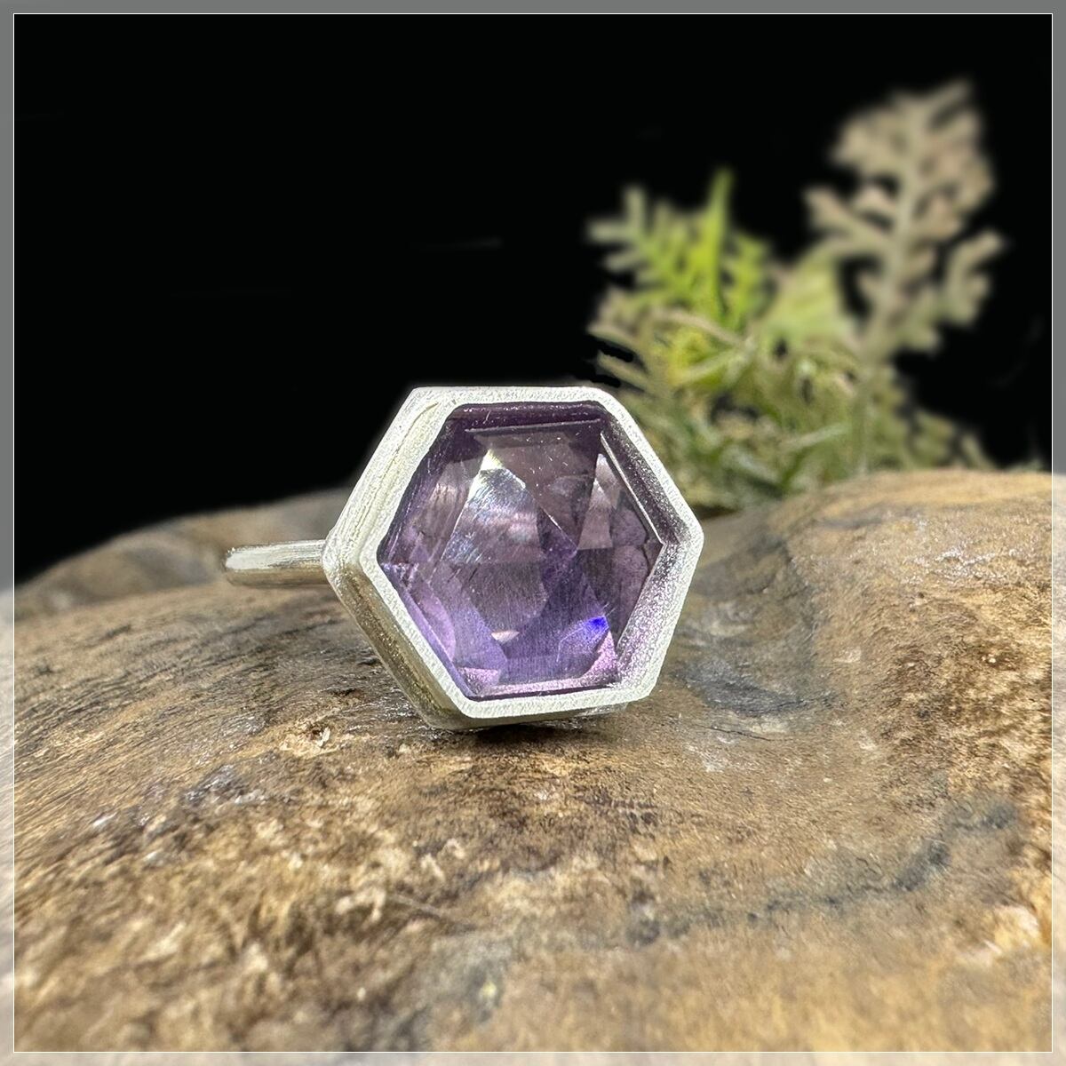 六角形のステップカットのアメジストです。