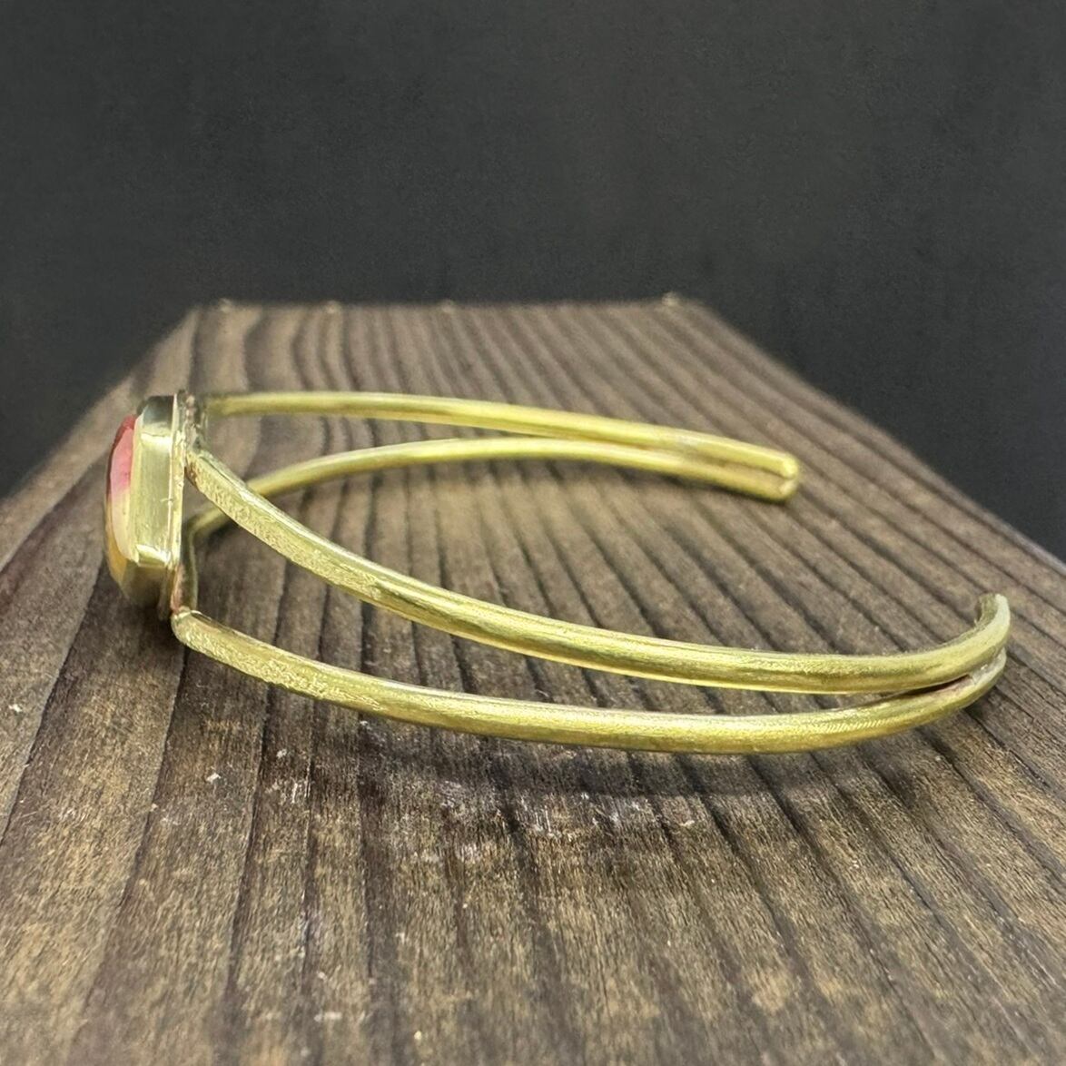 落ち着いた大人っぽい華やかさがあり、普段のお洋服やアクセサリーの差し色としてサッと着けていただきやすいバングルになりました。