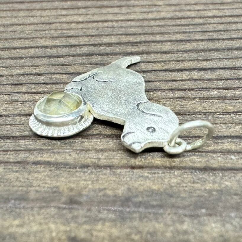石をボールに見立ててシルバーで囲み、周りに細かな飾りを入れました。