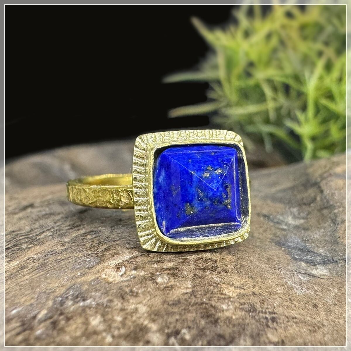 キリッとした瑠璃色と真鍮カラーがこれからの季節にぴったりのカッコいい指輪になりそうです。