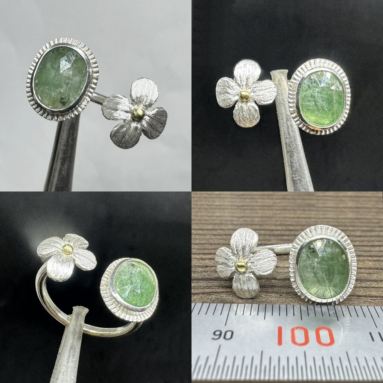 小さめ楕円形のミントグリーンカイヤナイトを使った指輪です。