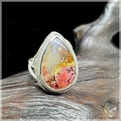 まるで秋の紅葉の景色を切り取ったような美しい内包物のある石です。