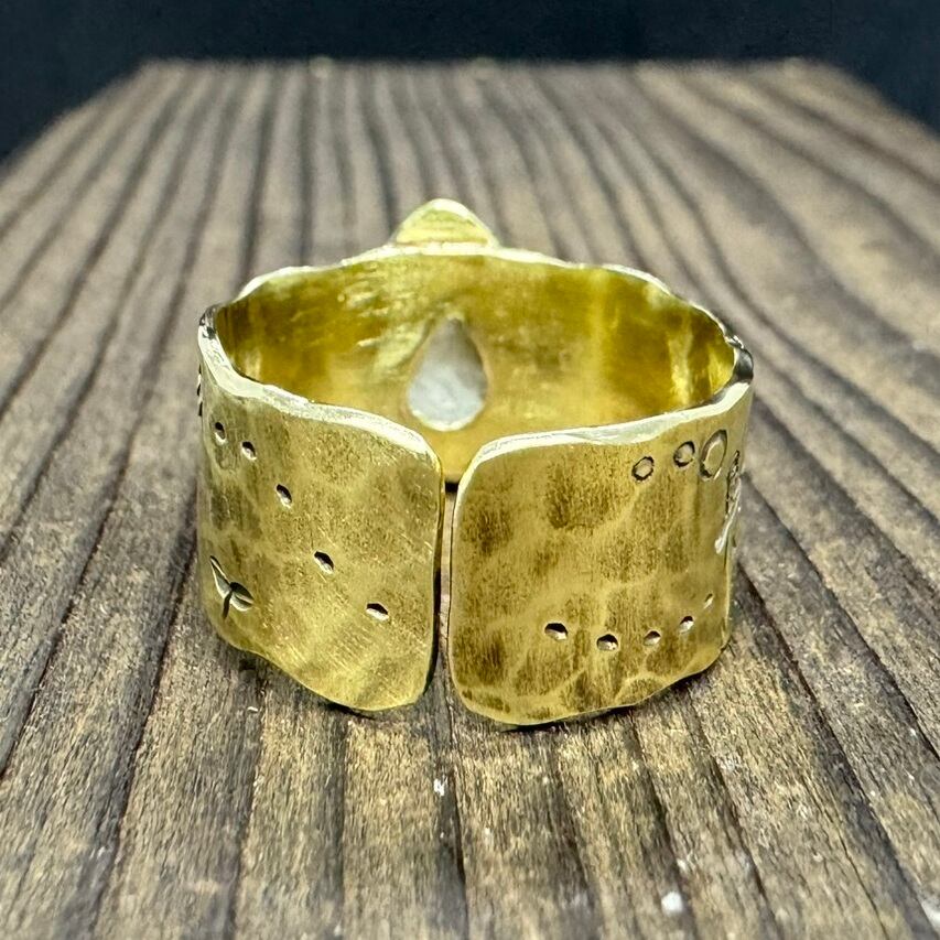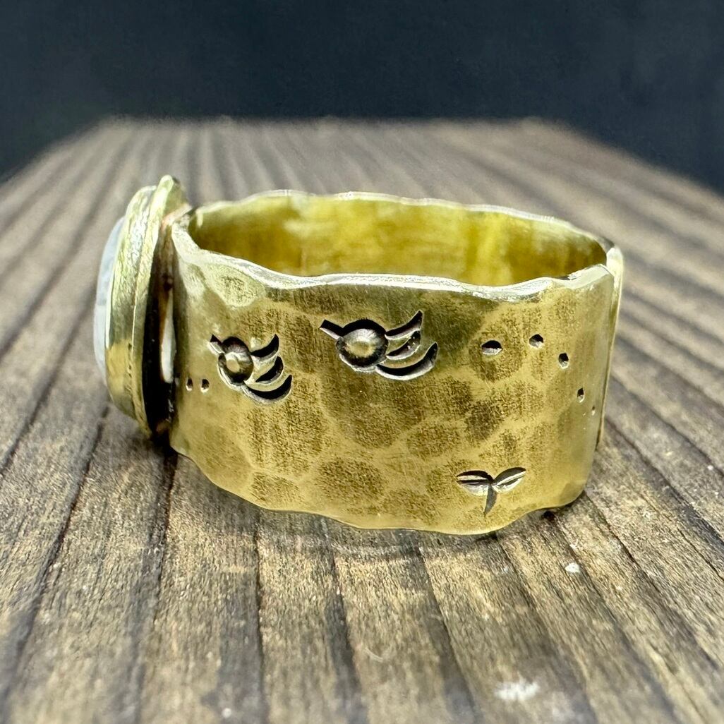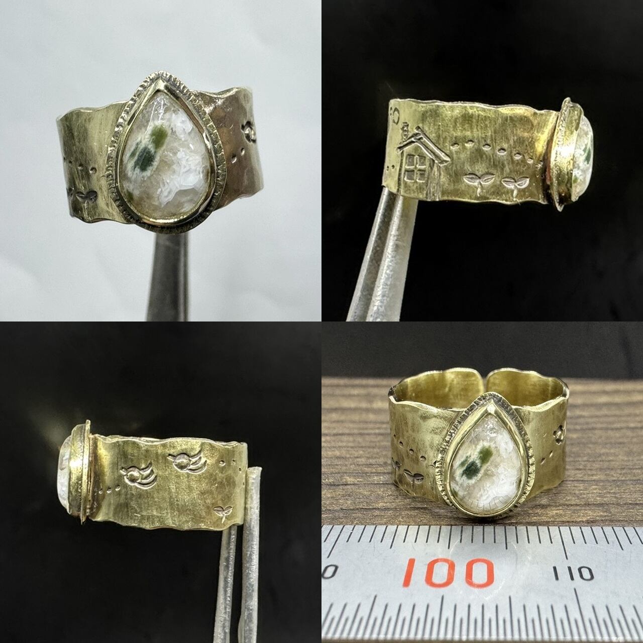 石は真鍮で囲み、その周りに細かな飾りを入れました。