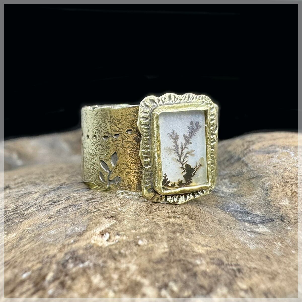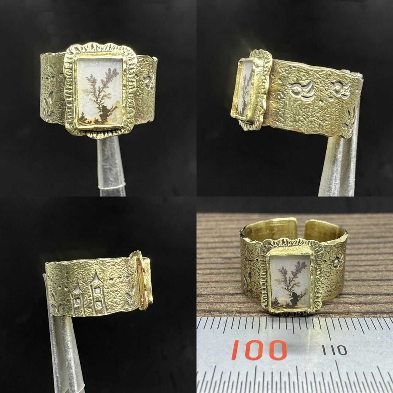 石は真鍮で囲み、その周りに細かな飾りを入れて額縁のようにしました。