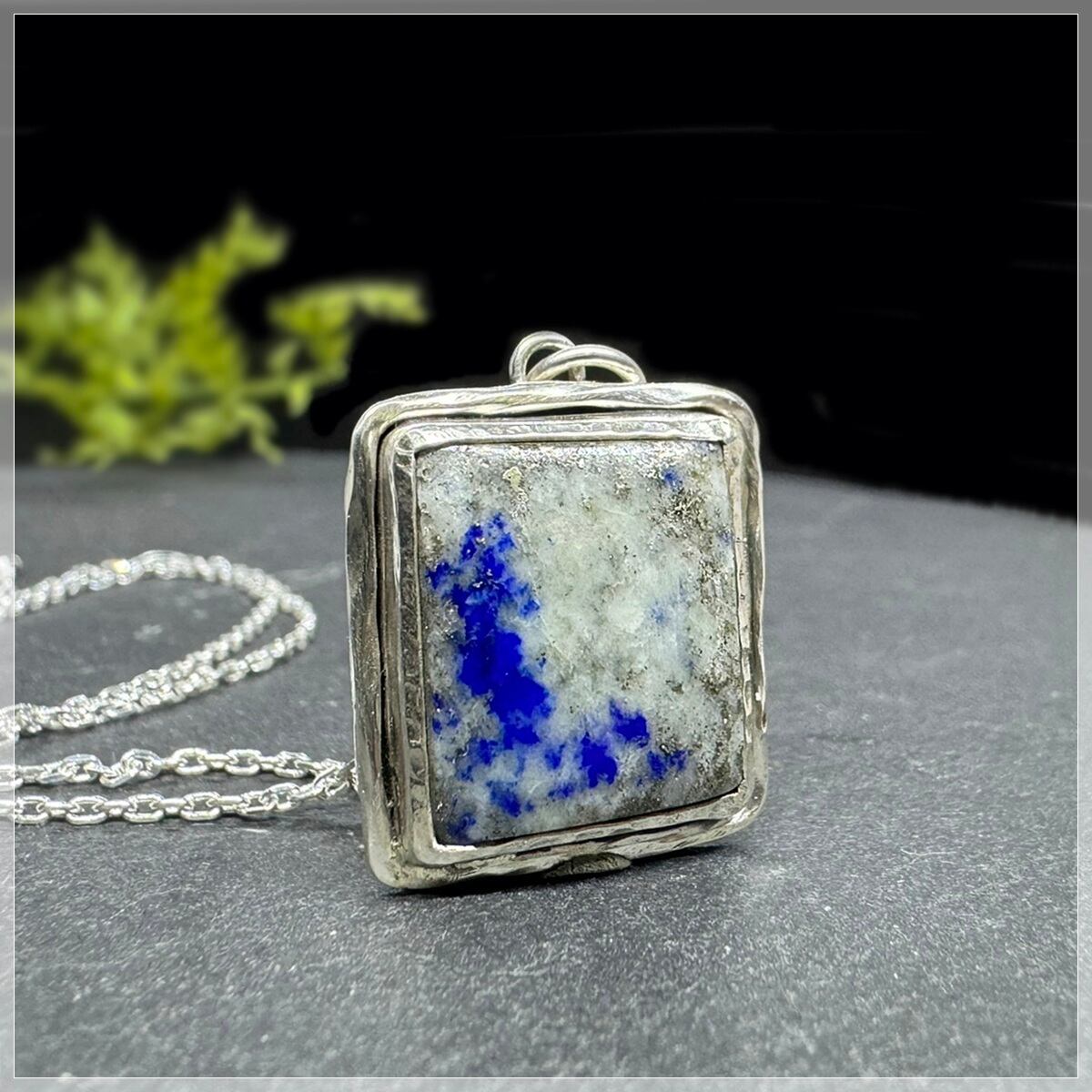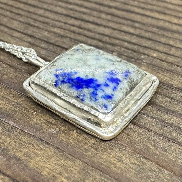 ラピスラズリの青とカルサイトの白、パイライトの金がバランスよく入った個性的な石です。