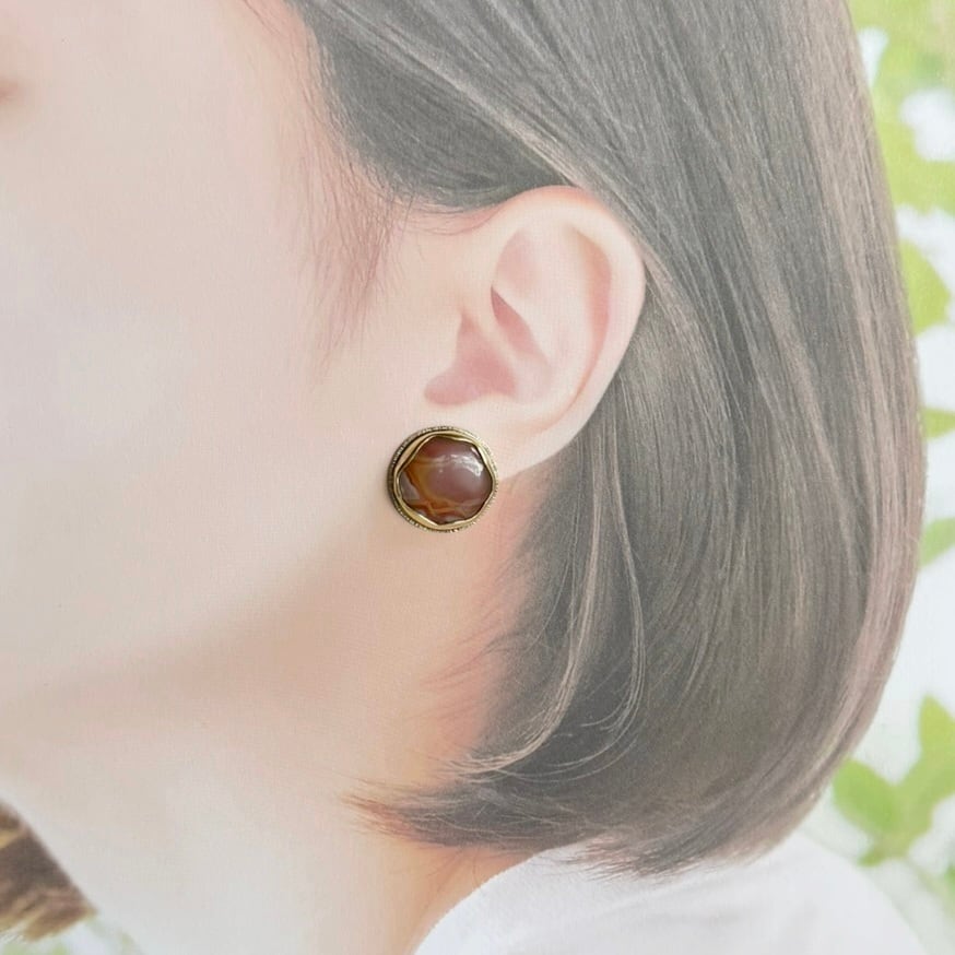 石の色と真鍮の色、パールの可愛い雰囲気が秋冬の装いにぴったりの大人可愛いピアスになりました。