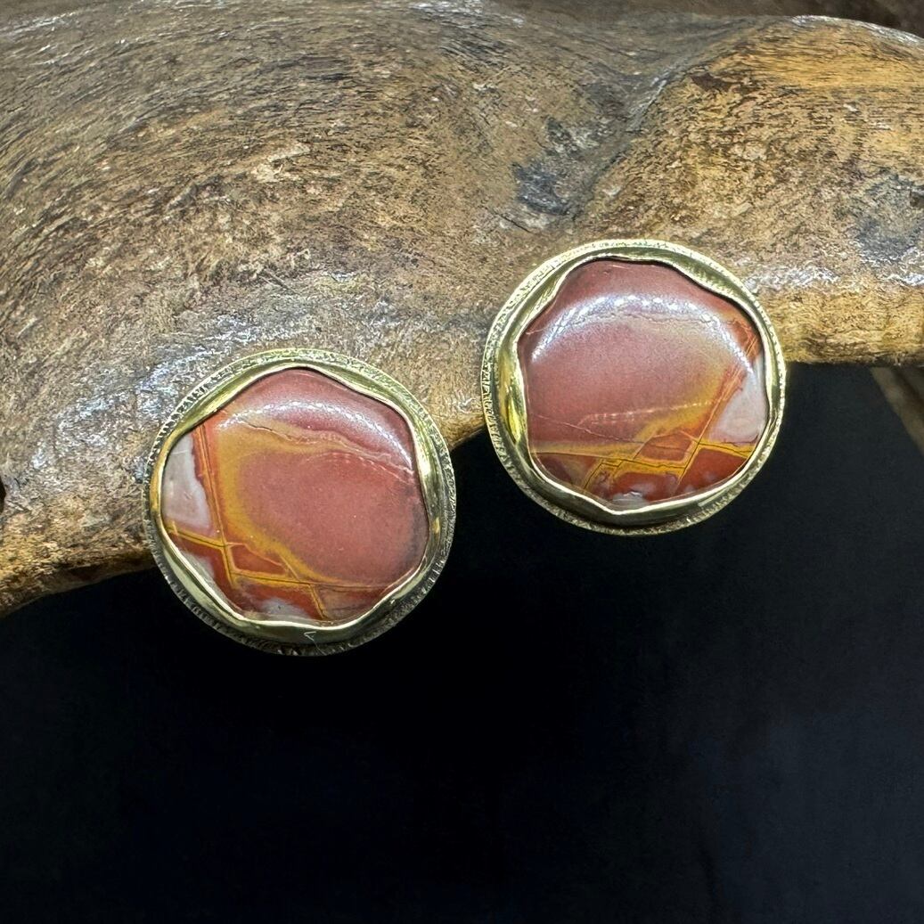 存在感のある丸いノリーナジャスパーを使ったピアスです。