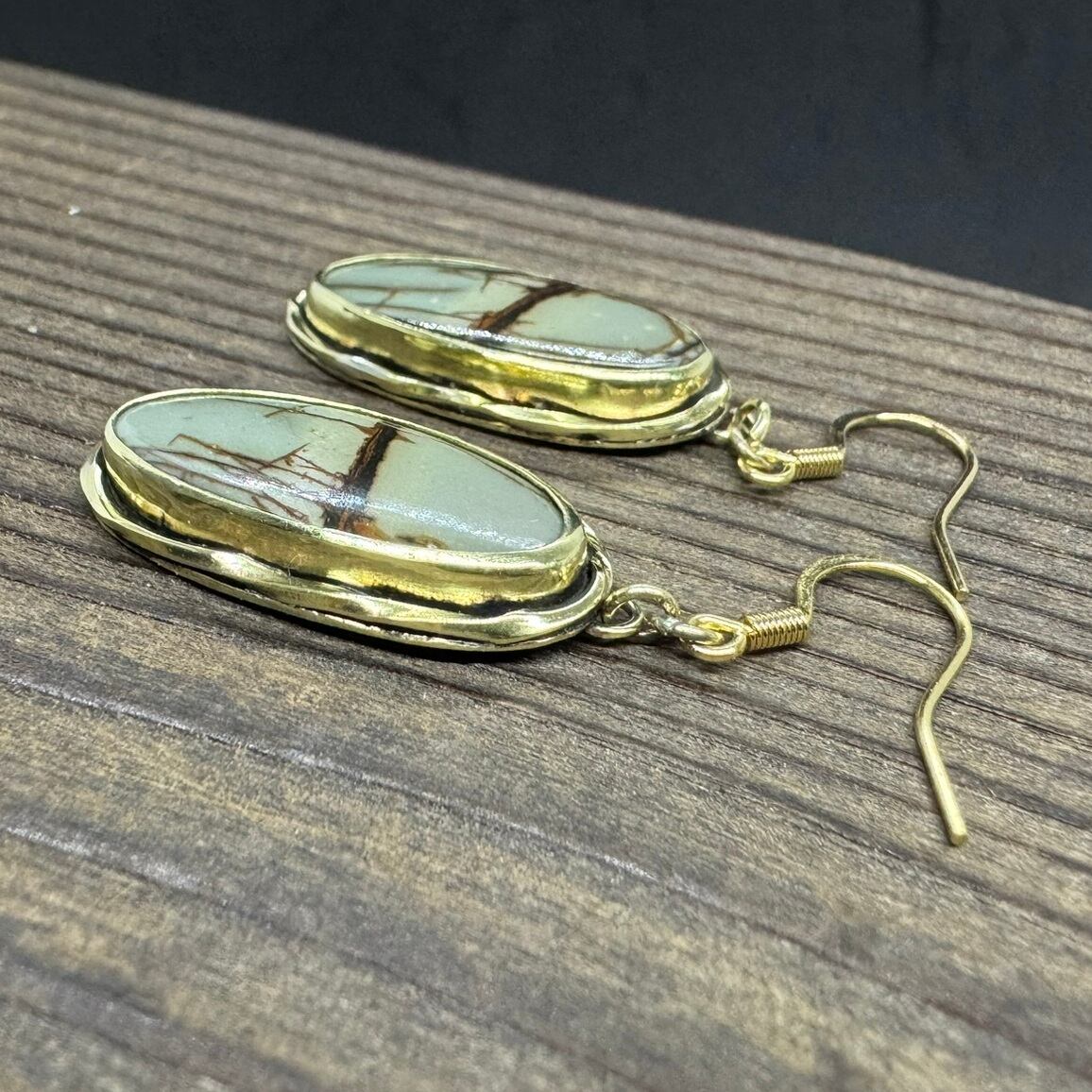 石の模様と色、真鍮の色がシックでカッコイイピアスになりました。