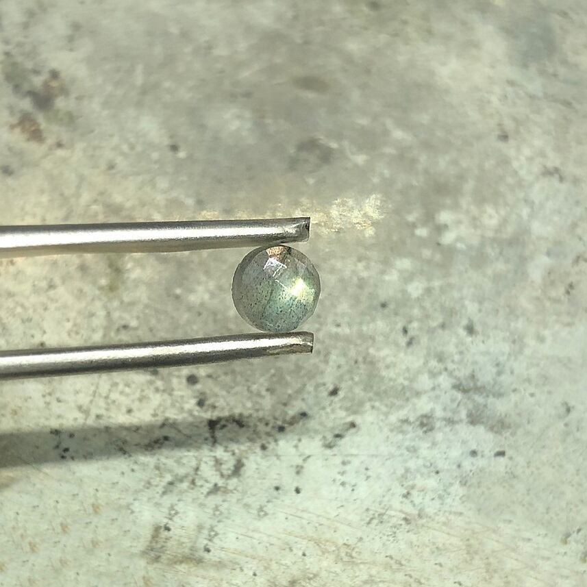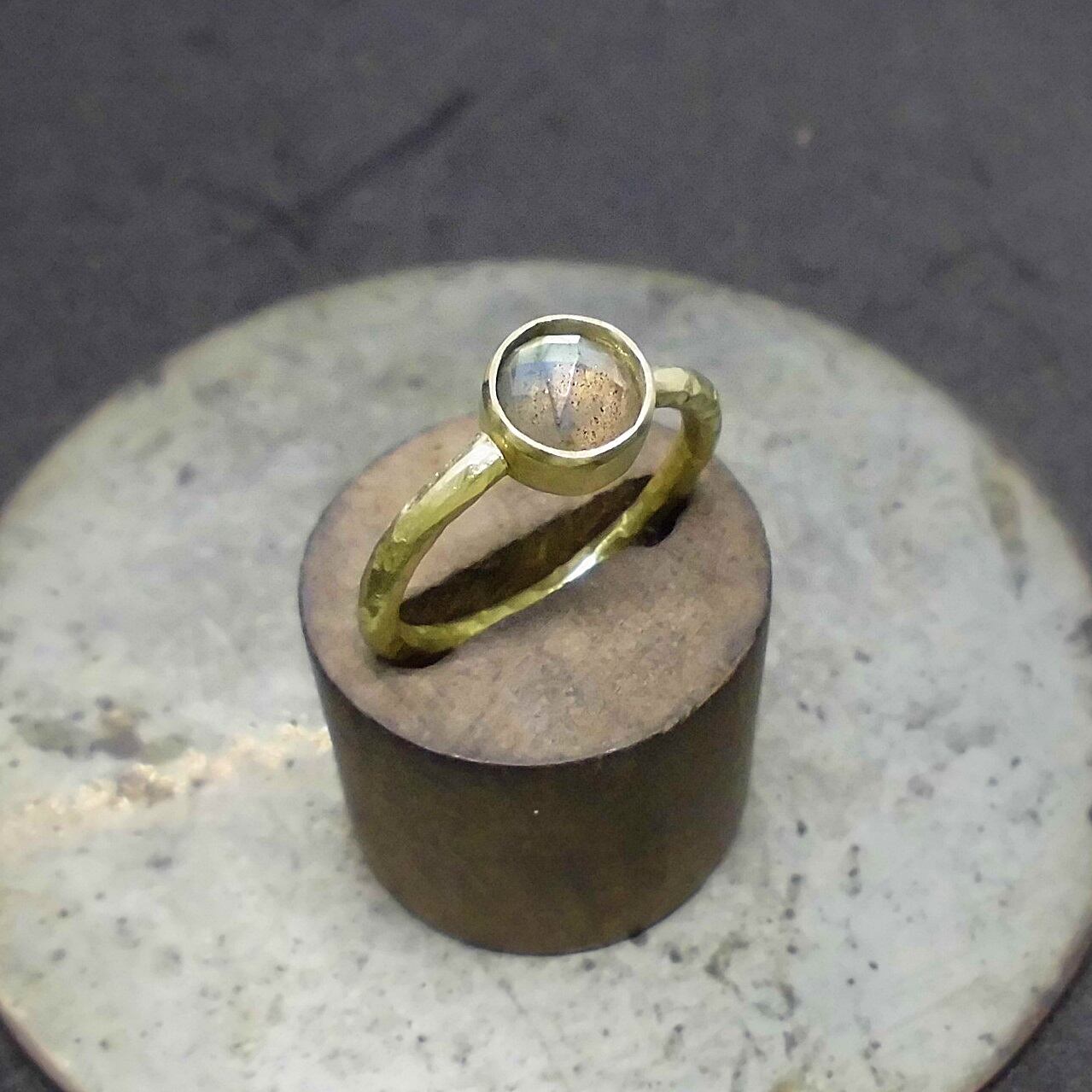 角度によってシラーが綺麗に見えるラブラドライトに、真鍮のゴツゴツしたアームを合わせた指輪です。