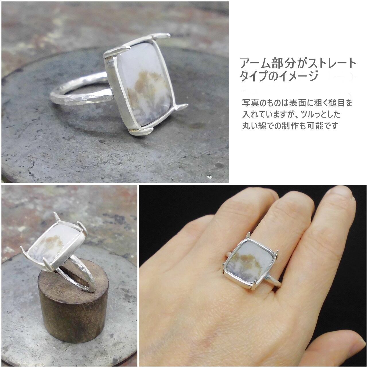 指輪のアーム部分は横に丸がにょきっと出たタイプか、シンプルなストレートタイプ、どちらかをお選びいただけます。