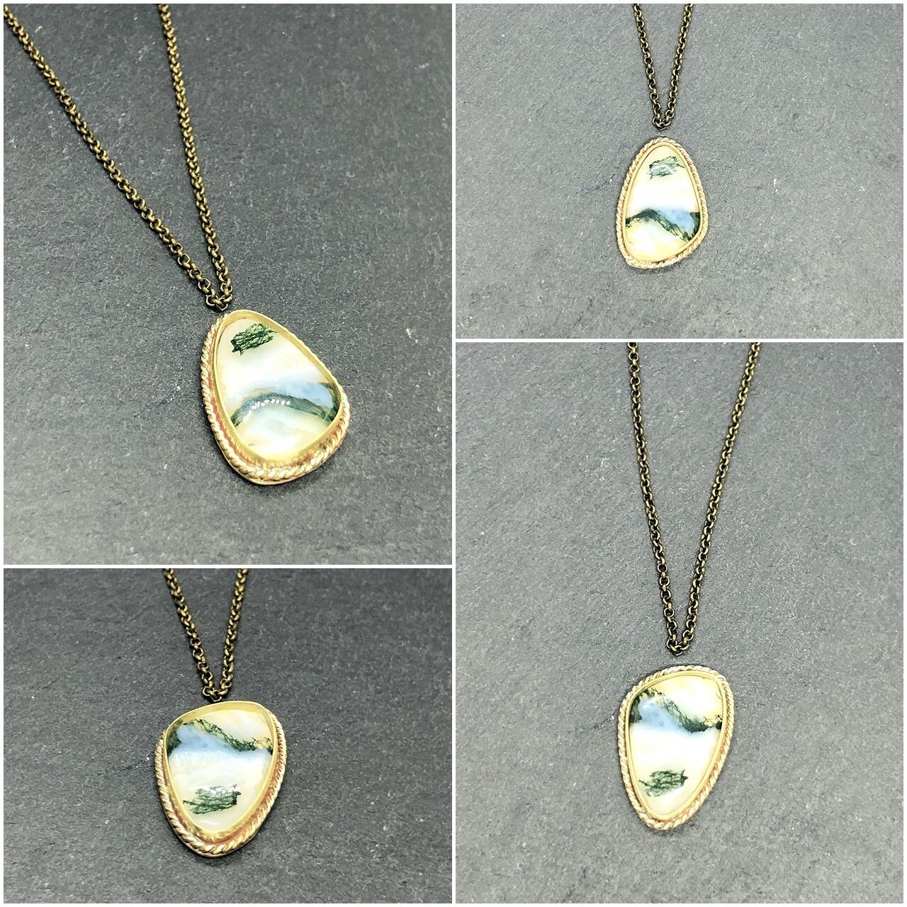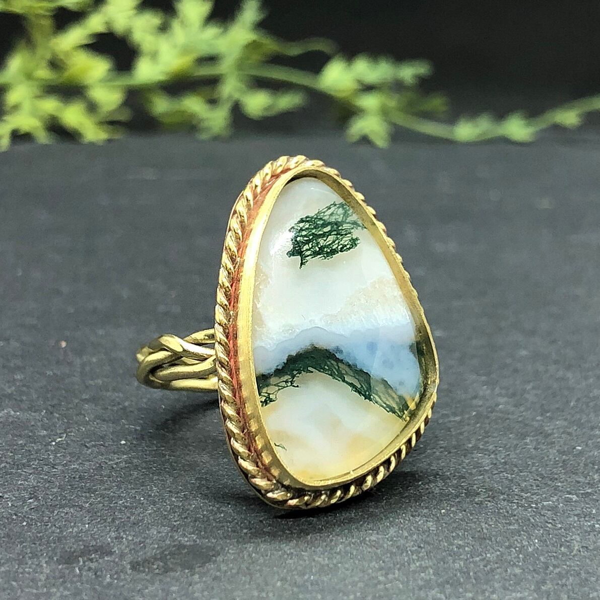 インパクトのある石の周りには真鍮ツイスト線を飾り付けました。