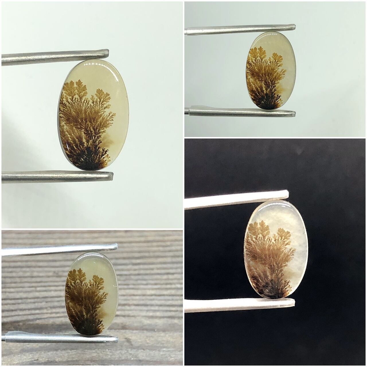 ツヤツヤの薄茶色のアゲートにたくさんの花が咲いたデンドリティックアゲートです。