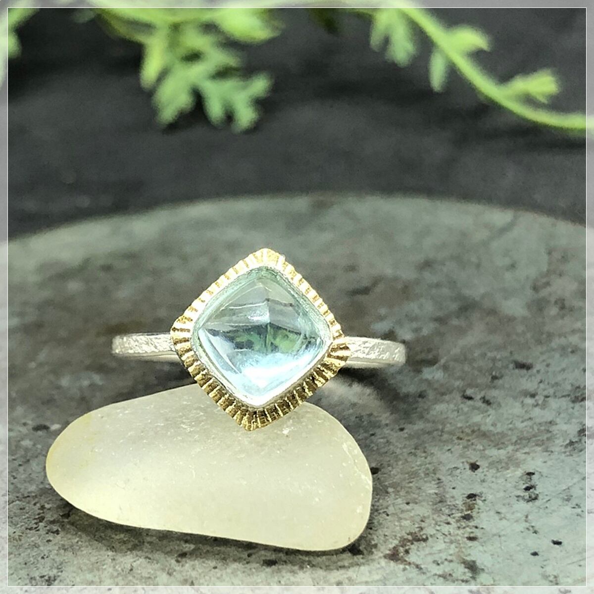 透明感のある淡いブルーが夏らしい、ブルートパーズを使ったリングです。