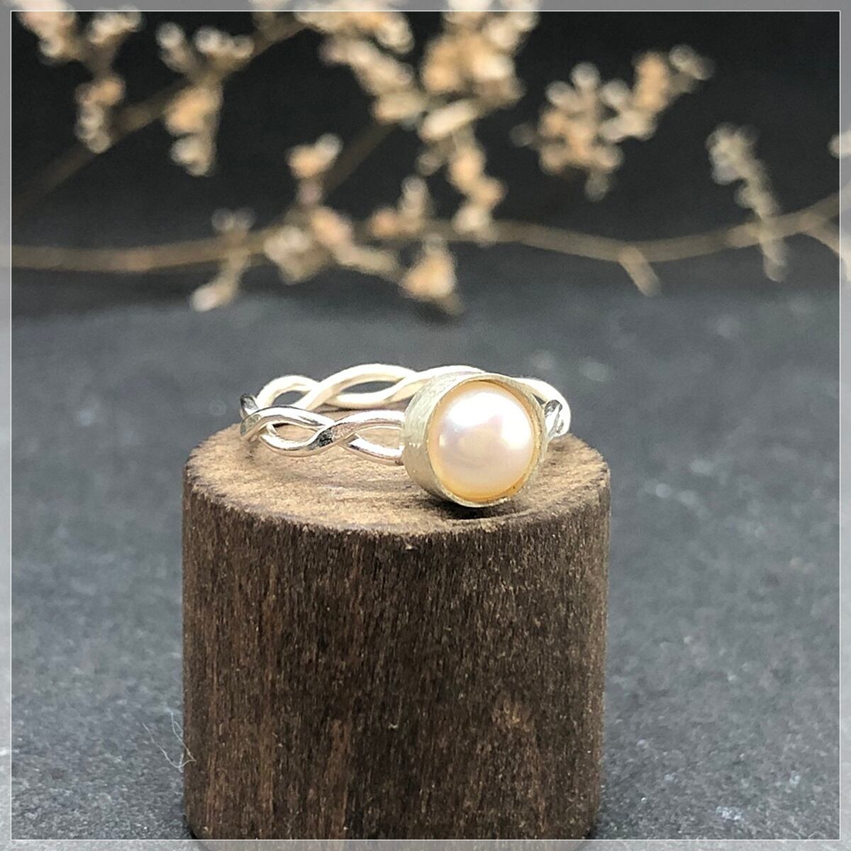 艶のある可愛いパールに合わせた石枠はシンプルに仕上げました。