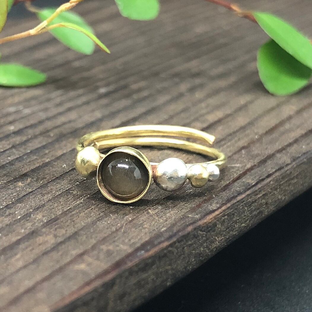 (一枚目の写真:左から真鍮/ムーンストーン/シルバー/真鍮/シルバー)