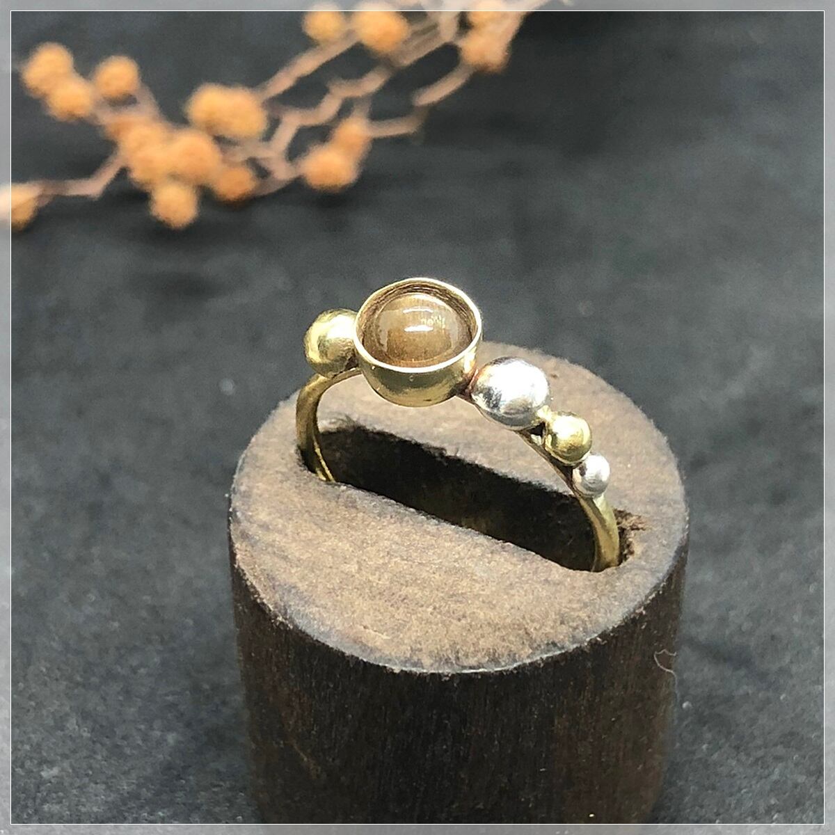約5㎜程度の小さなムーンストーンに合わせてシルバーと真鍮の粒を重ねてみました。