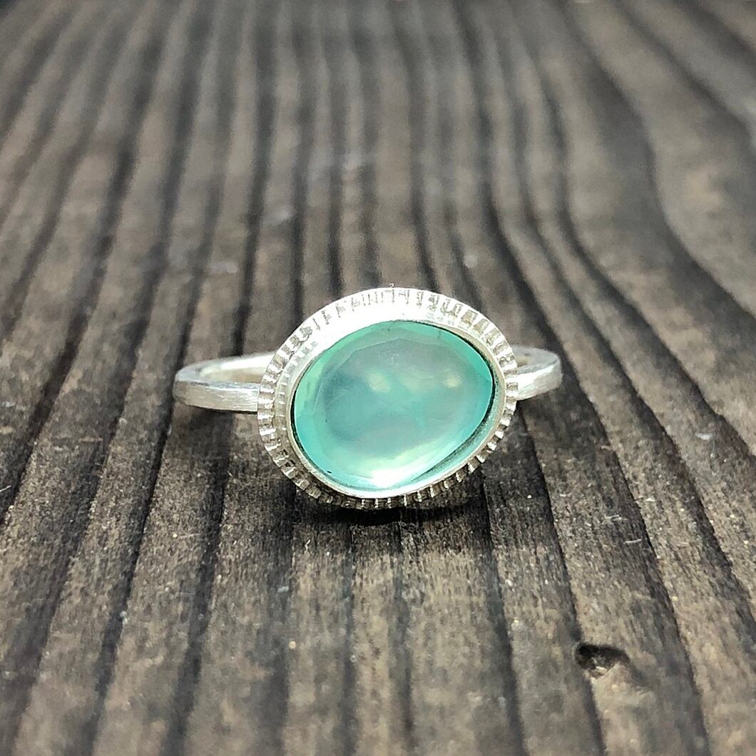 覆輪留めをすると石の表面を金属が覆ってもう少し丸いイメージに仕上がります。