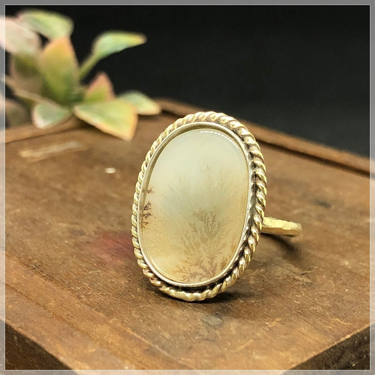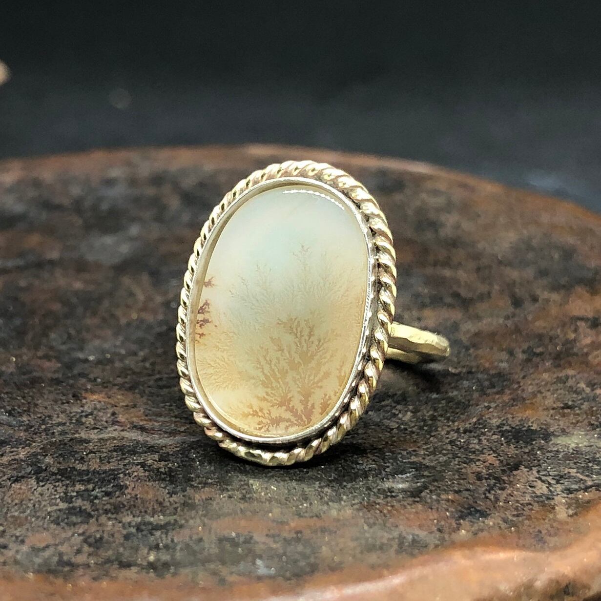 楕円形にうっすらと樹木模様がグラデーションのように出たデンドリティックアゲートです。