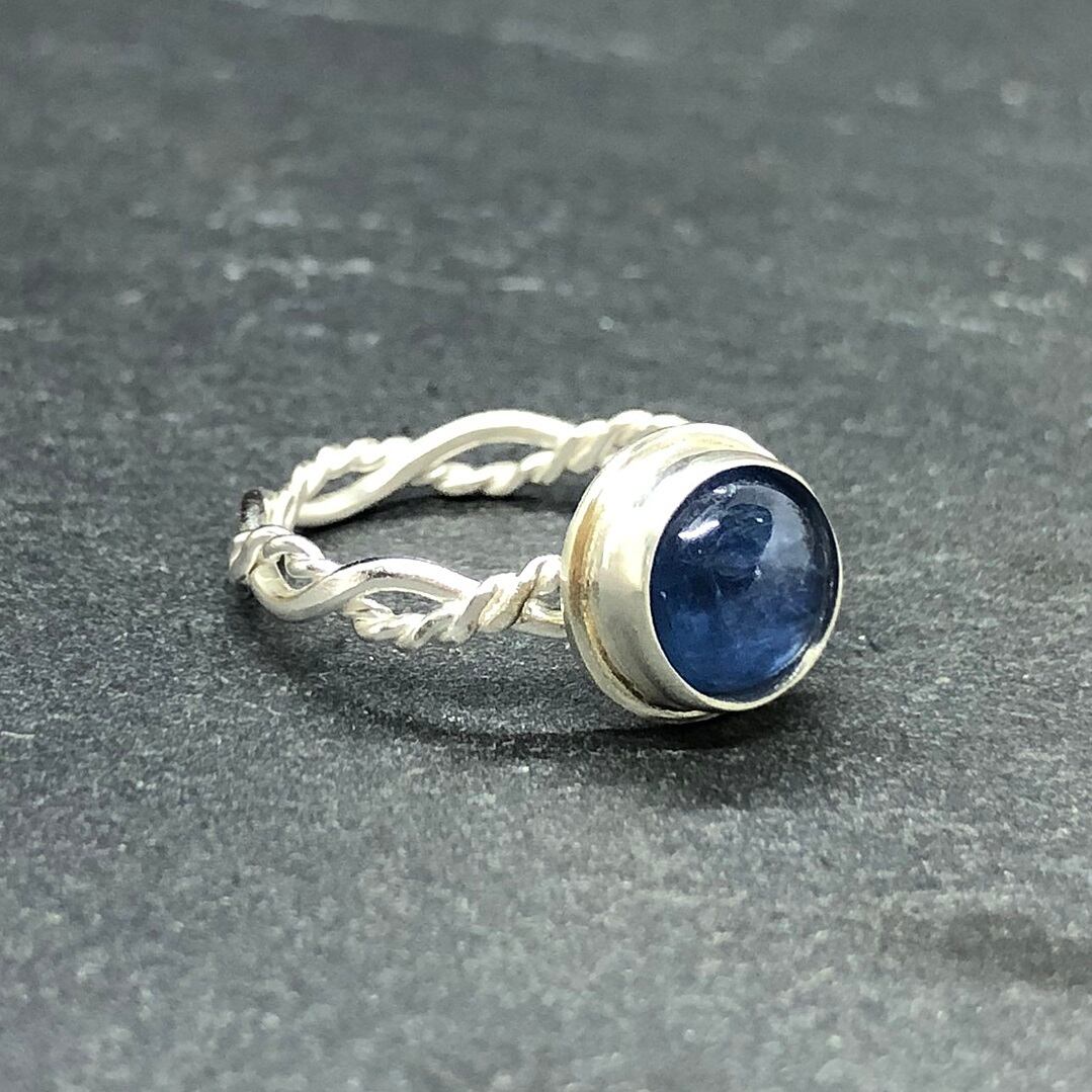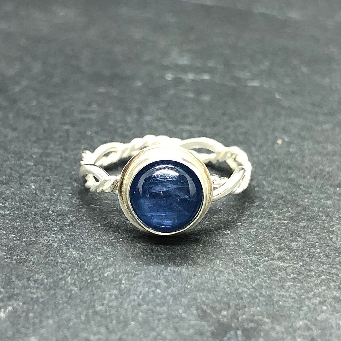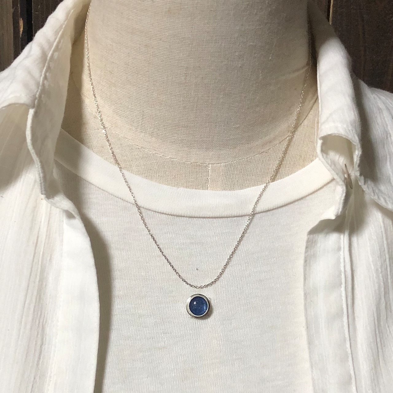 スッキリした青色にシンプルなシルバー枠を合わせて石の色を引き立てました。