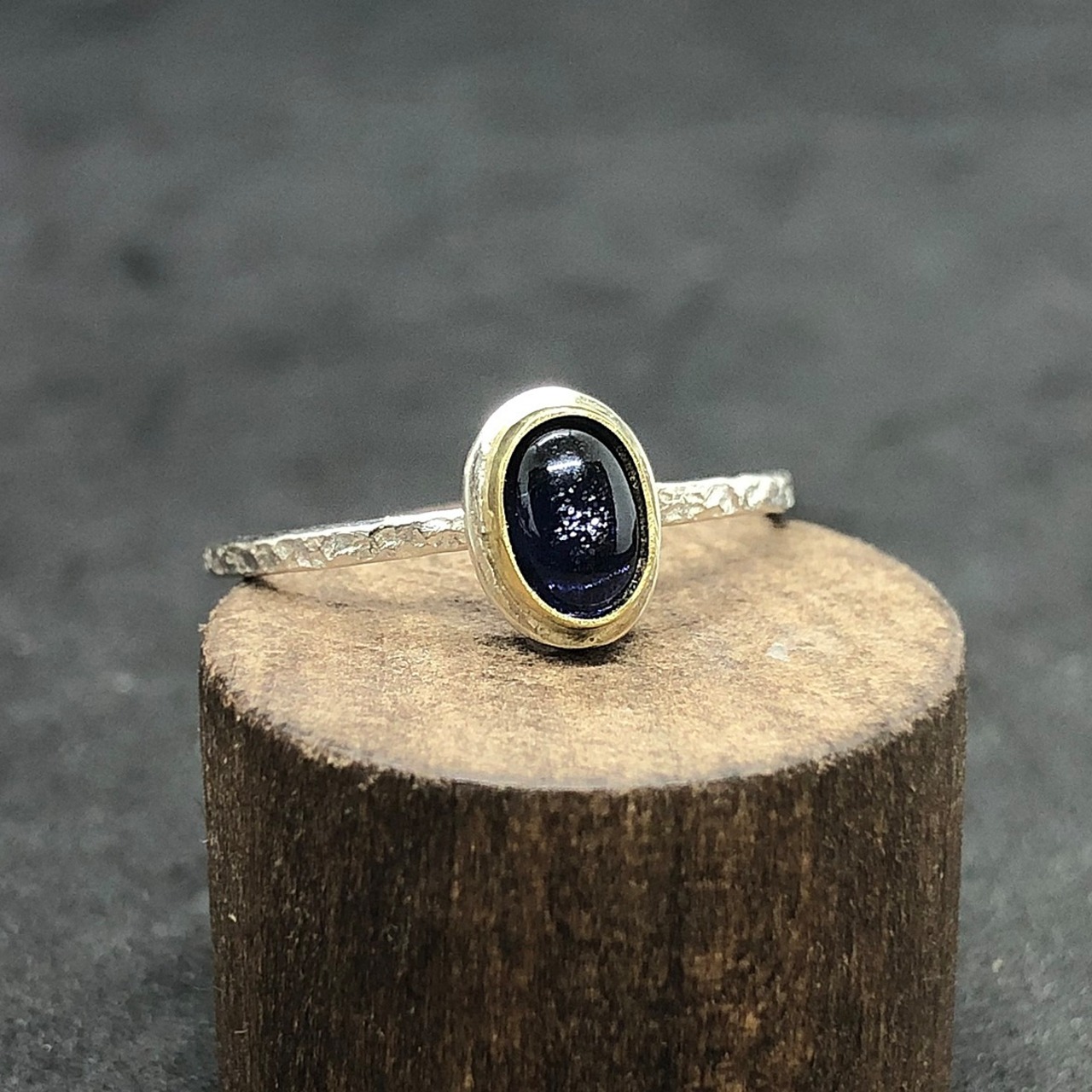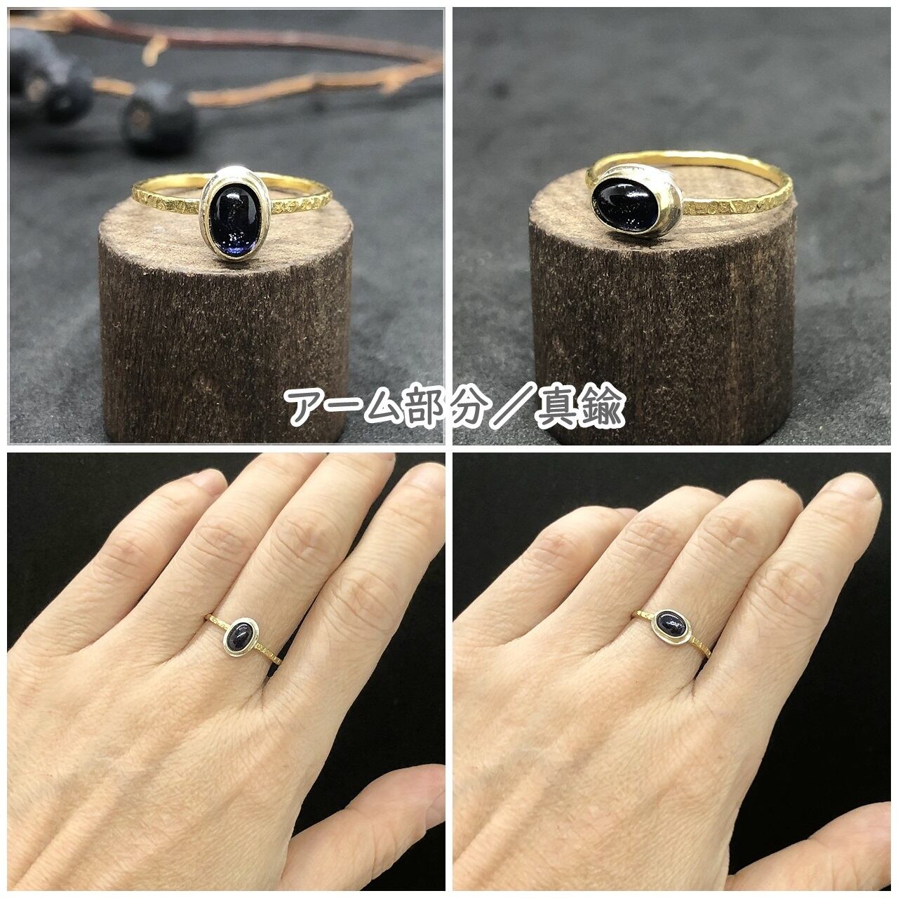 小振りのアイオライトに合わせてアーム部分も華奢なスターダストの槌目にしています。