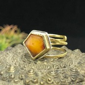 マットなオレンジ系茶色と五角形が個性的なイエロークォーツです。