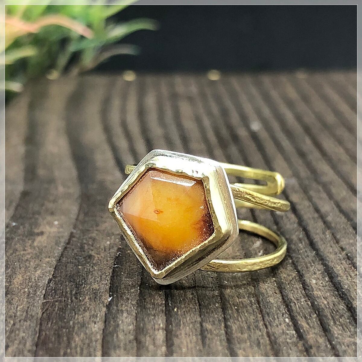 石の色味や形、デザインなどからクラフト感のある個性的な指輪になりました。