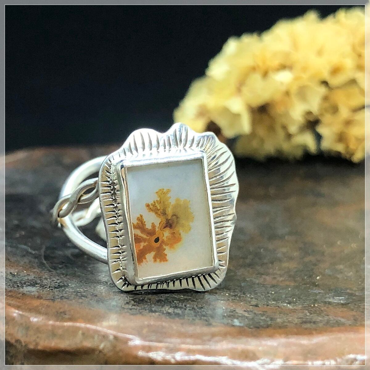 オレンジ色の花を描いたような四角のデンドリティックアゲートです。
