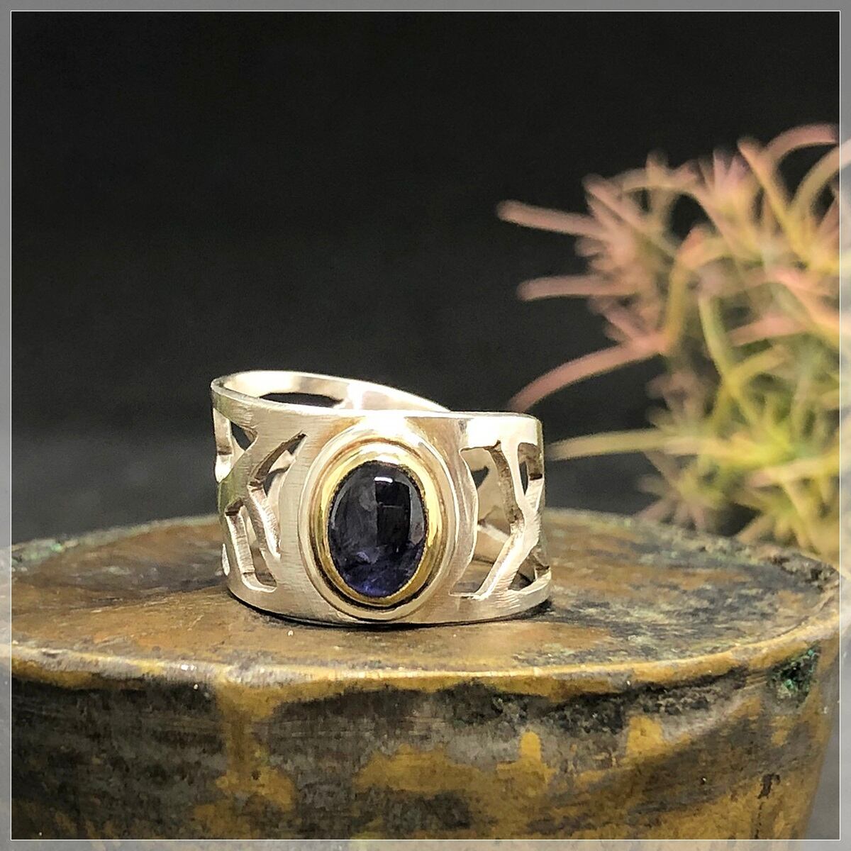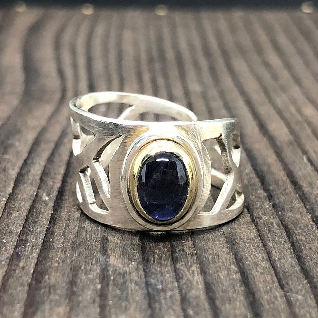 深い海のような色合いが美しい楕円形のアイオライトです。