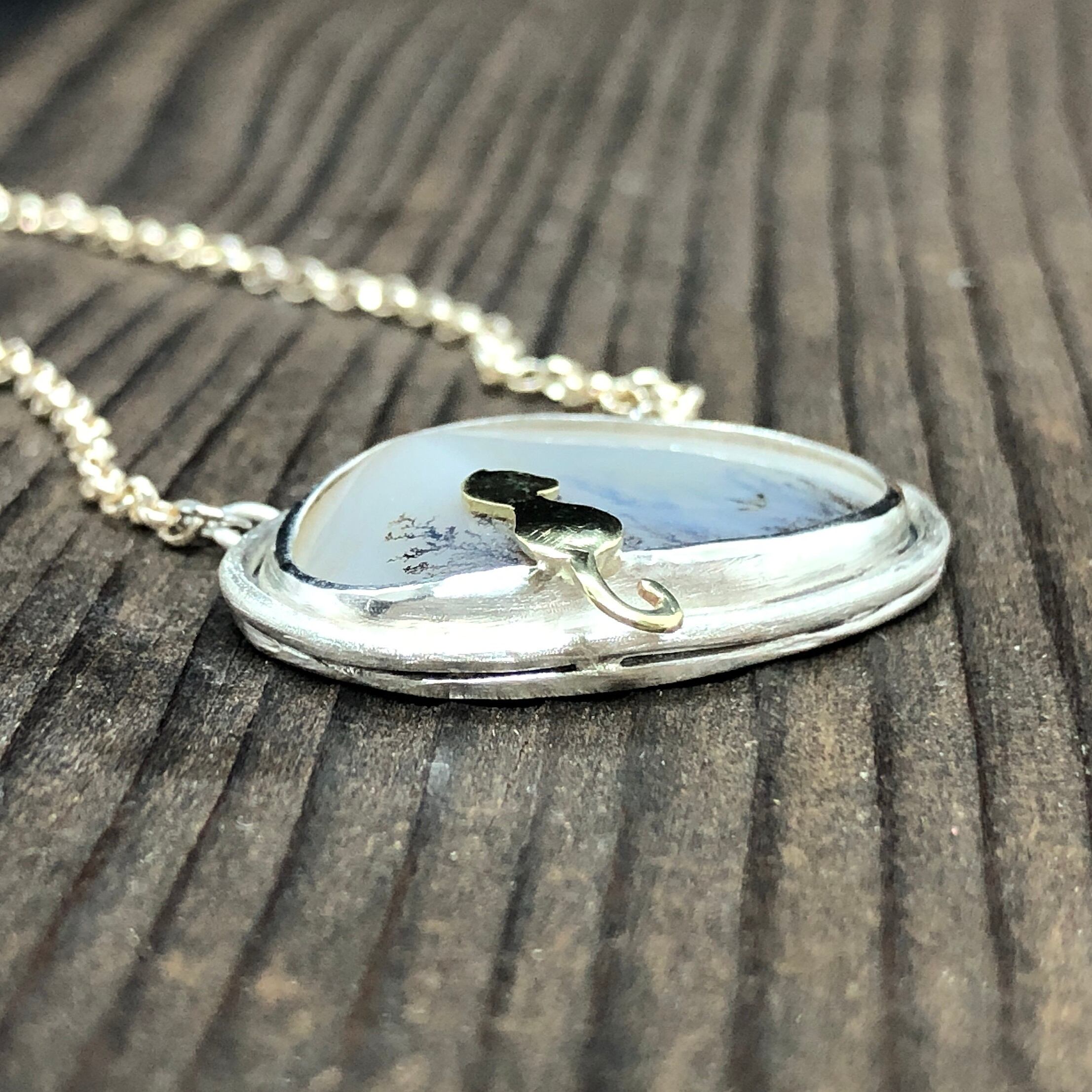 このデンドリティックアゲートは指輪にはちょっと大きいサイズだったのでネックレスに。